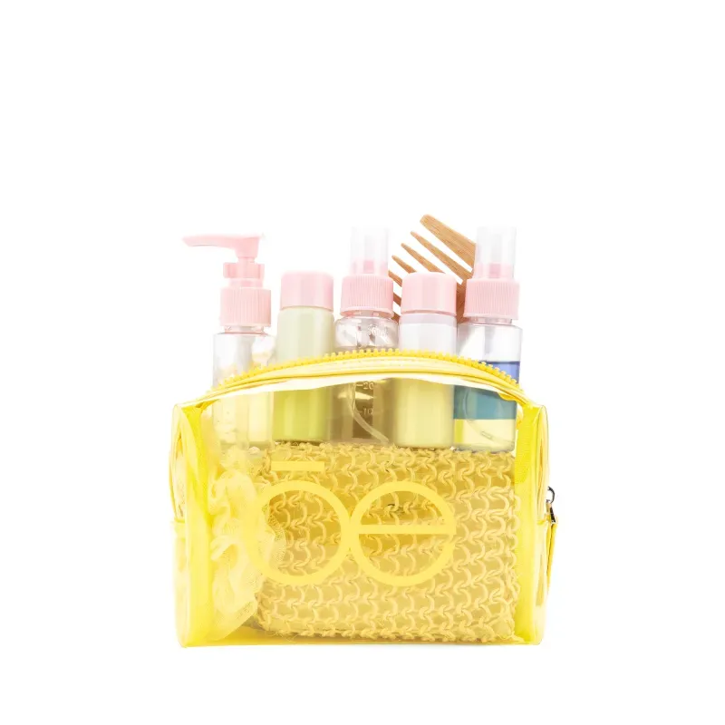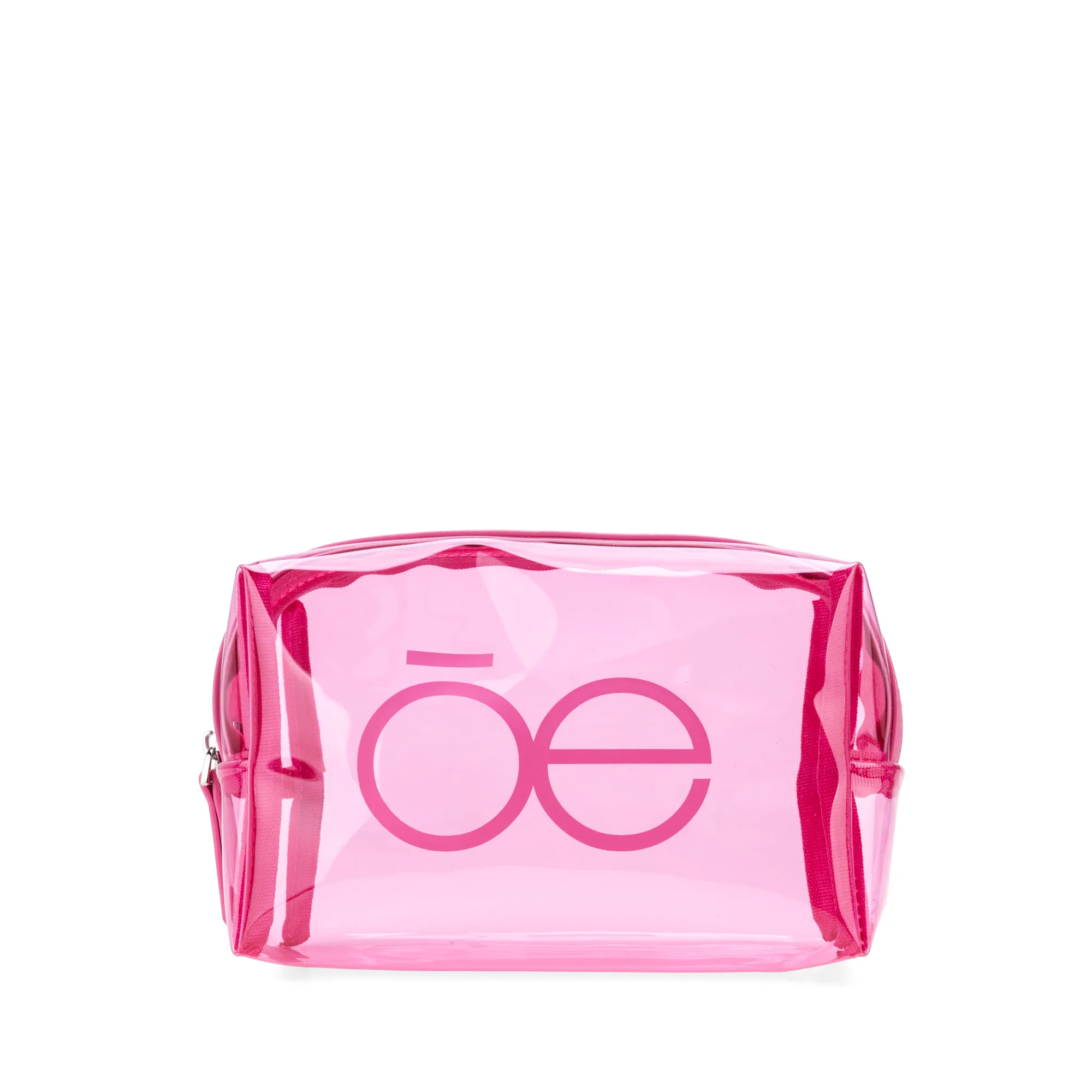 Cosmetiquera hecha con material mica. Cuenta con cierre sencillo. Estampado de monograma.