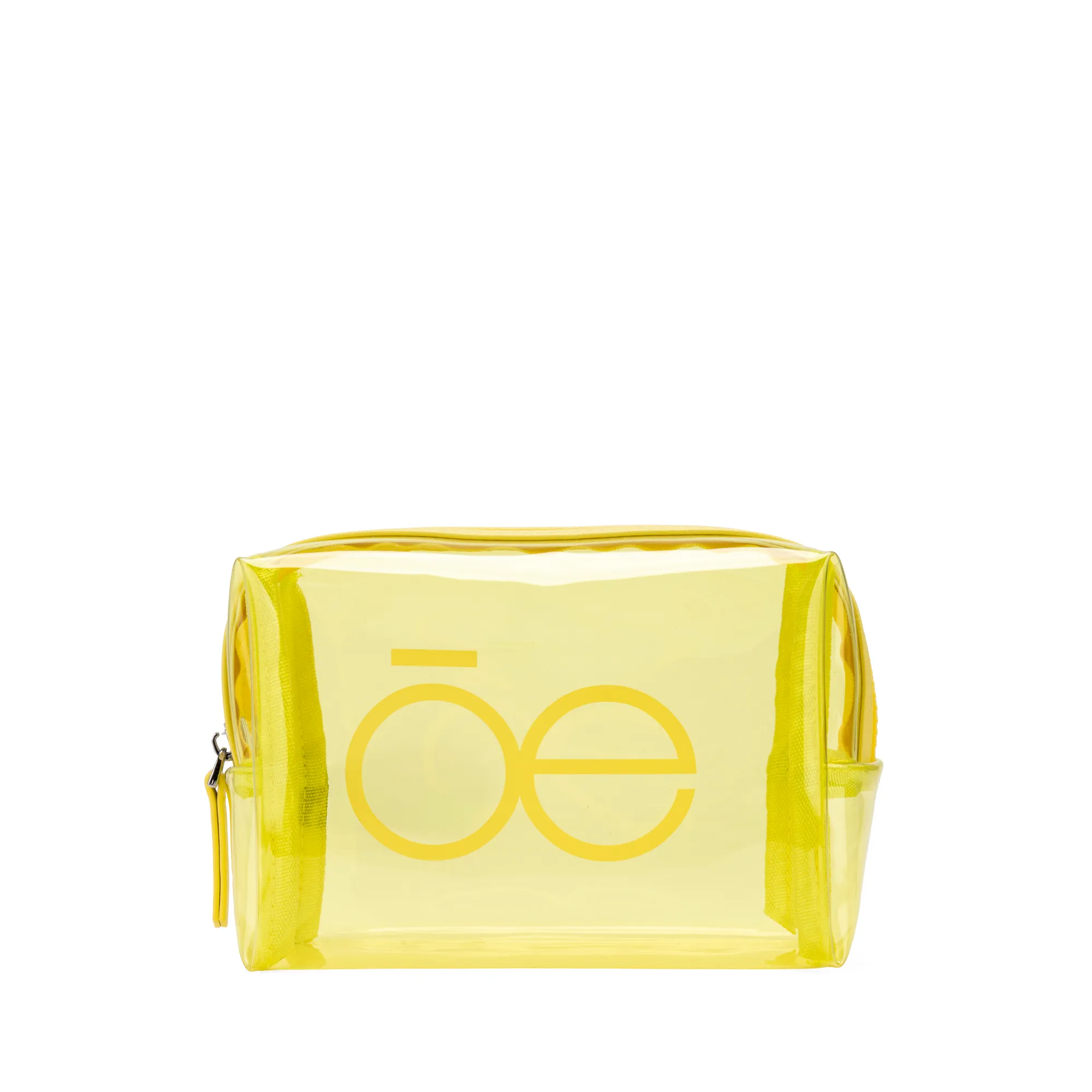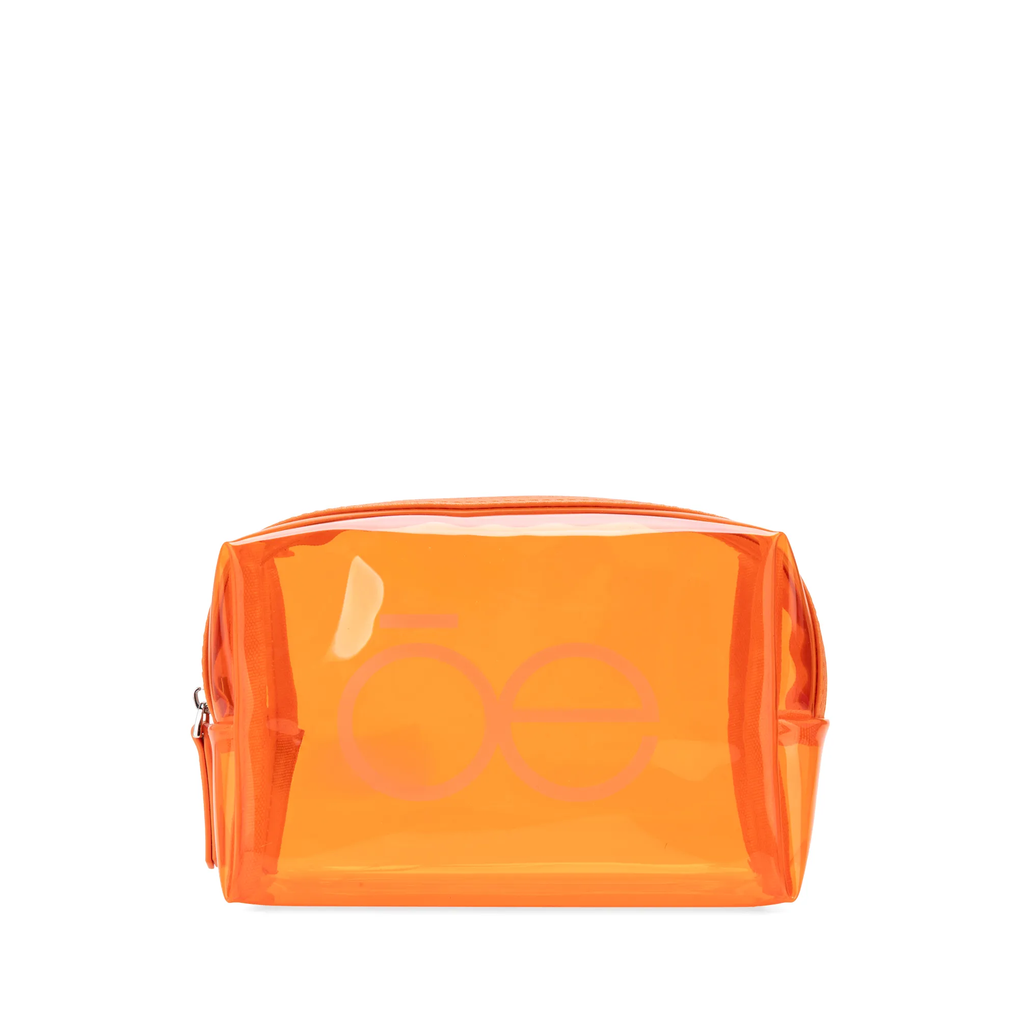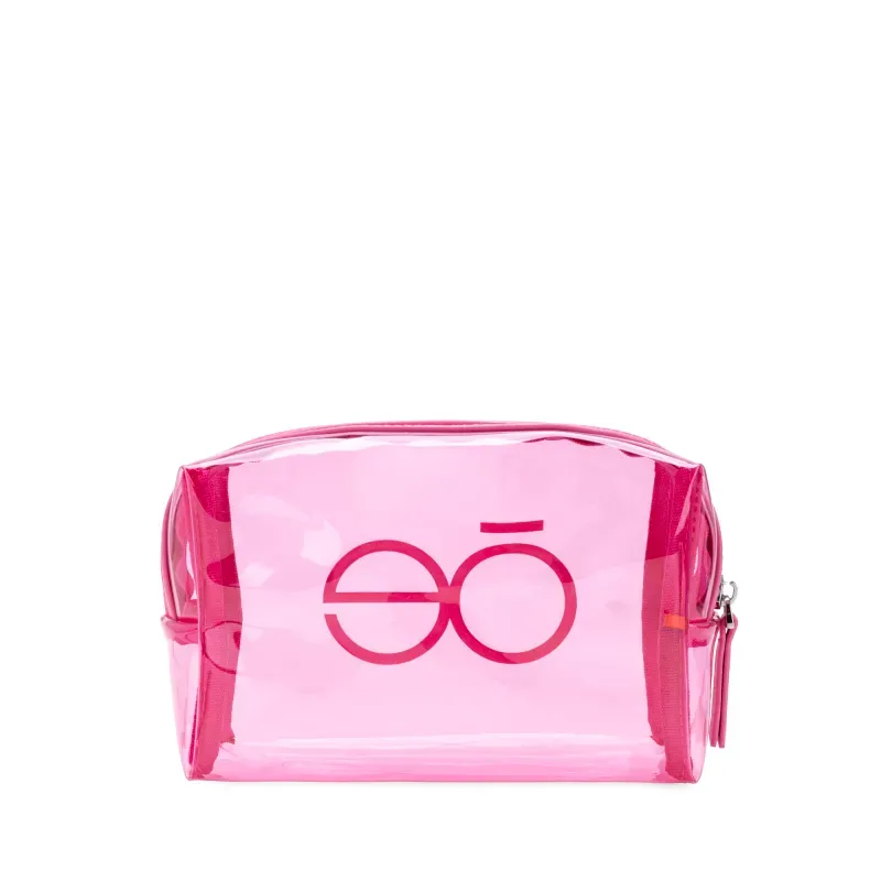 Cosmetiquera hecha con material mica. Cuenta con cierre sencillo. Estampado de monograma.