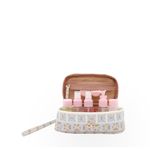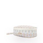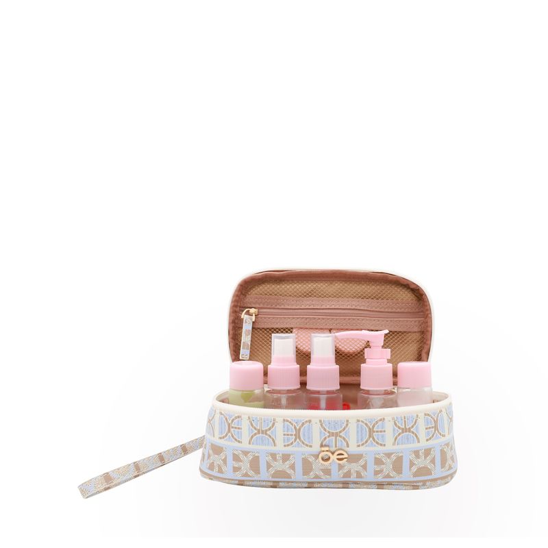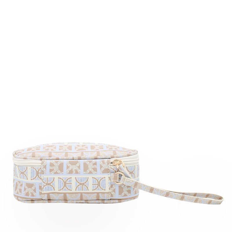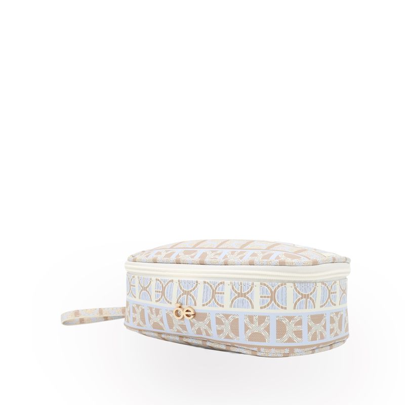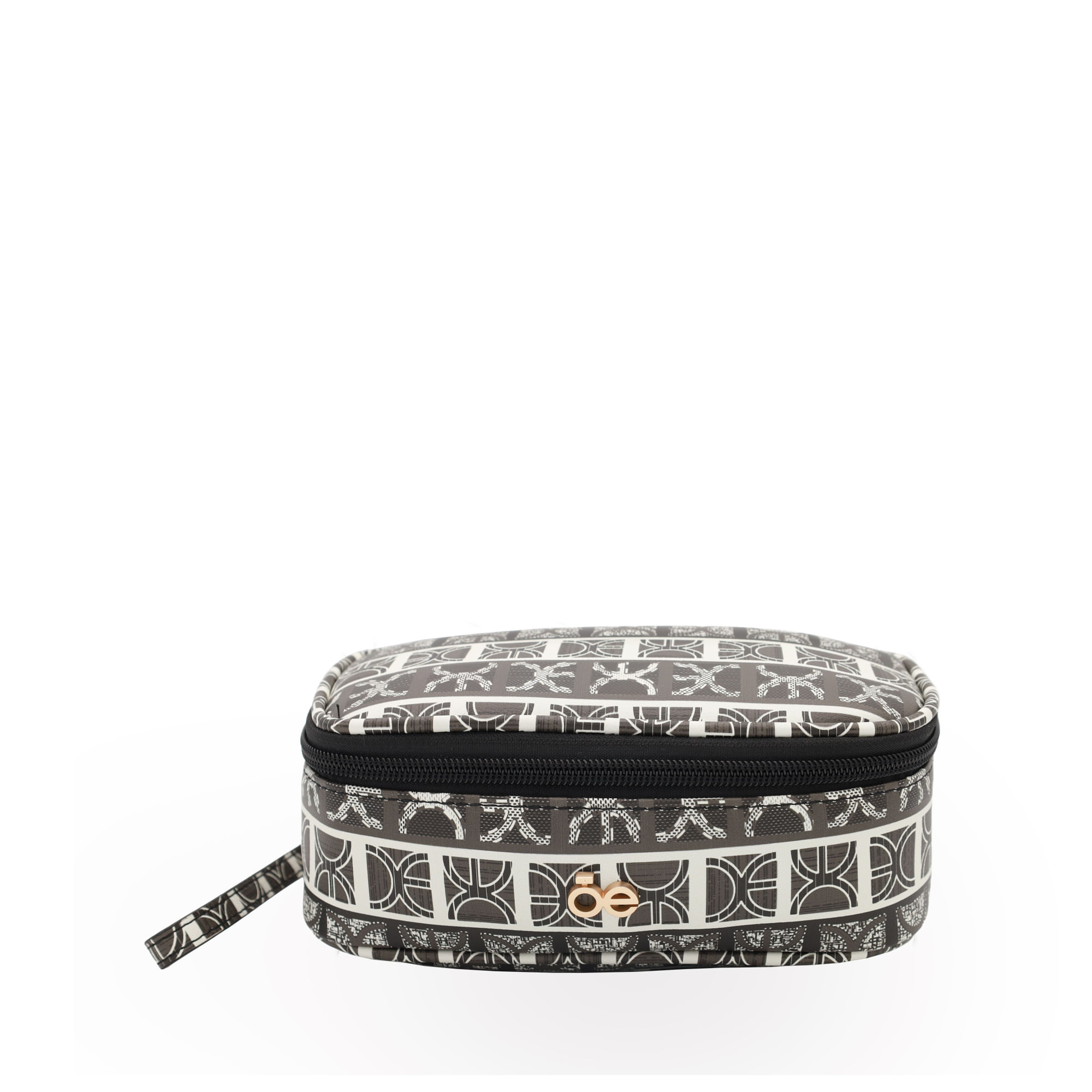 Cosmetiquera hecha con material vegano apariencia piel. Cuenta con cierre de larga duración. Tiene maneral lateral de fácil uso. Capacidad chica de almacenaje.