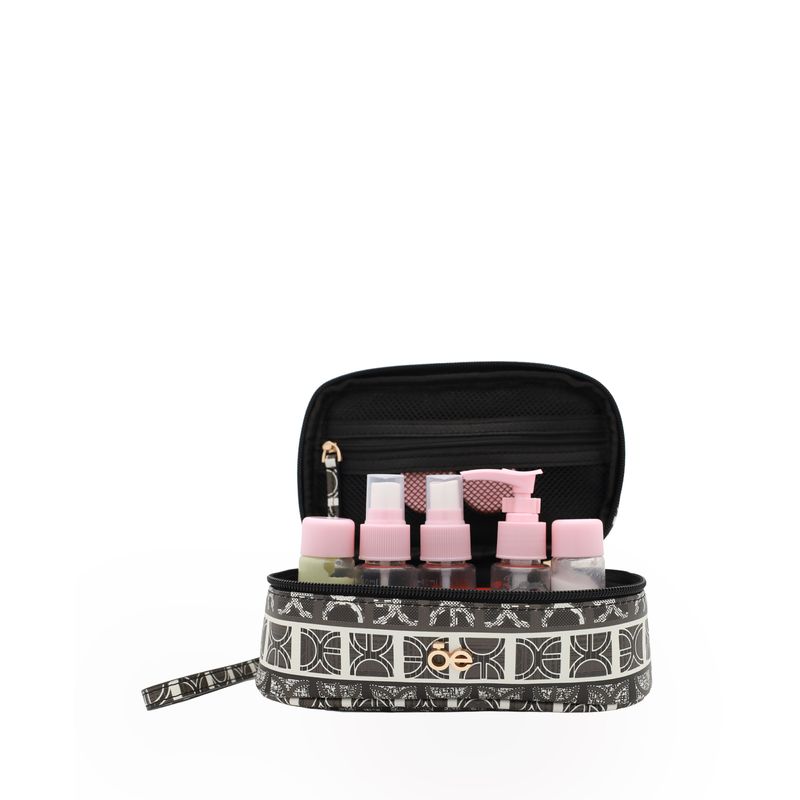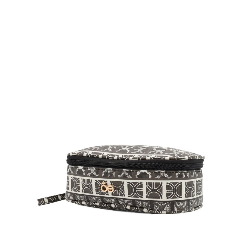 Cosmetiquera hecha con material vegano apariencia piel. Cuenta con cierre de larga duración. Tiene maneral lateral de fácil uso. Capacidad chica de almacenaje.