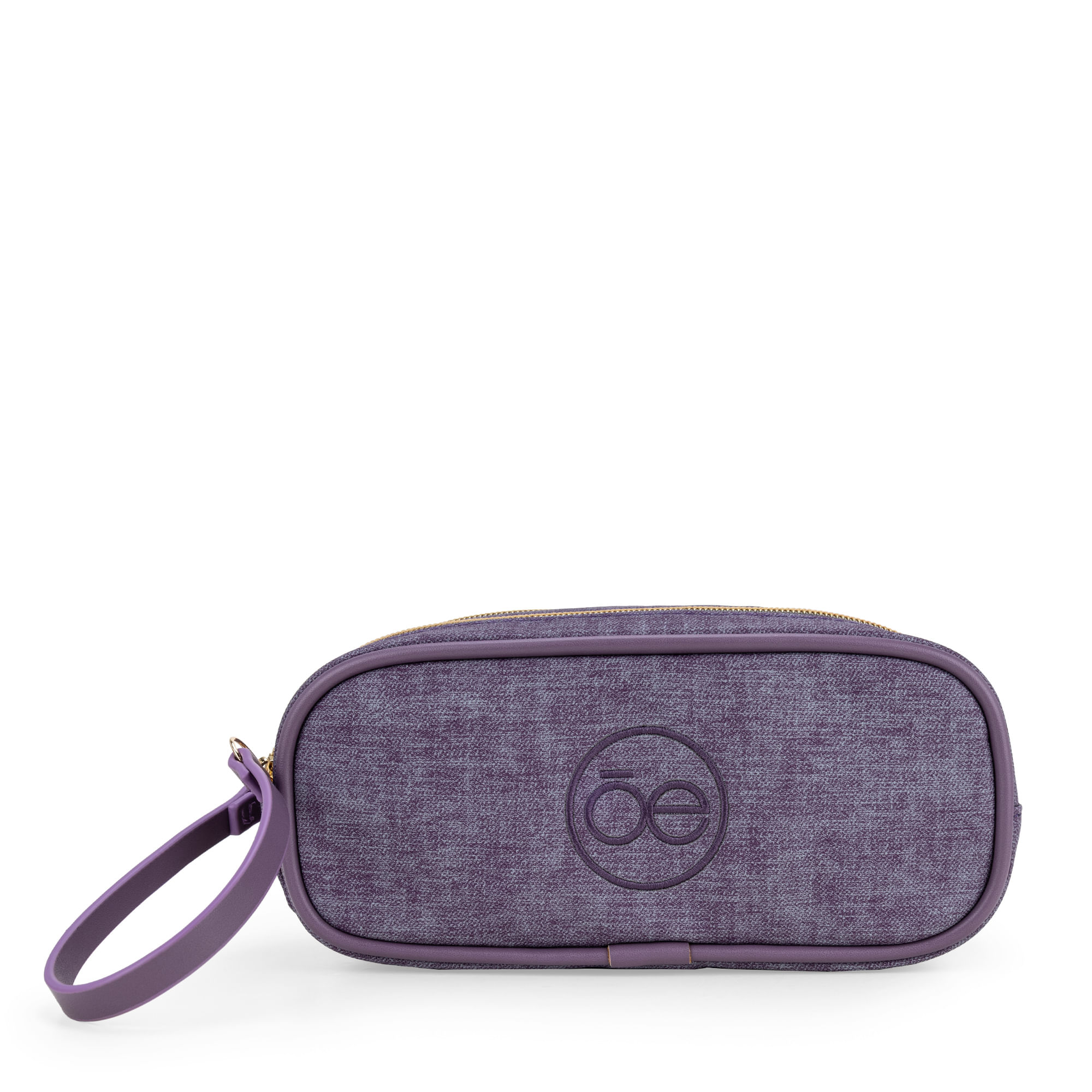 Cosmetiquera hecha con material vegano apariencia denim. Cuenta con doble cierre metálico de larga duración. Maneral lateral de fácil uso. Bordado de monograma. Broche magnético.