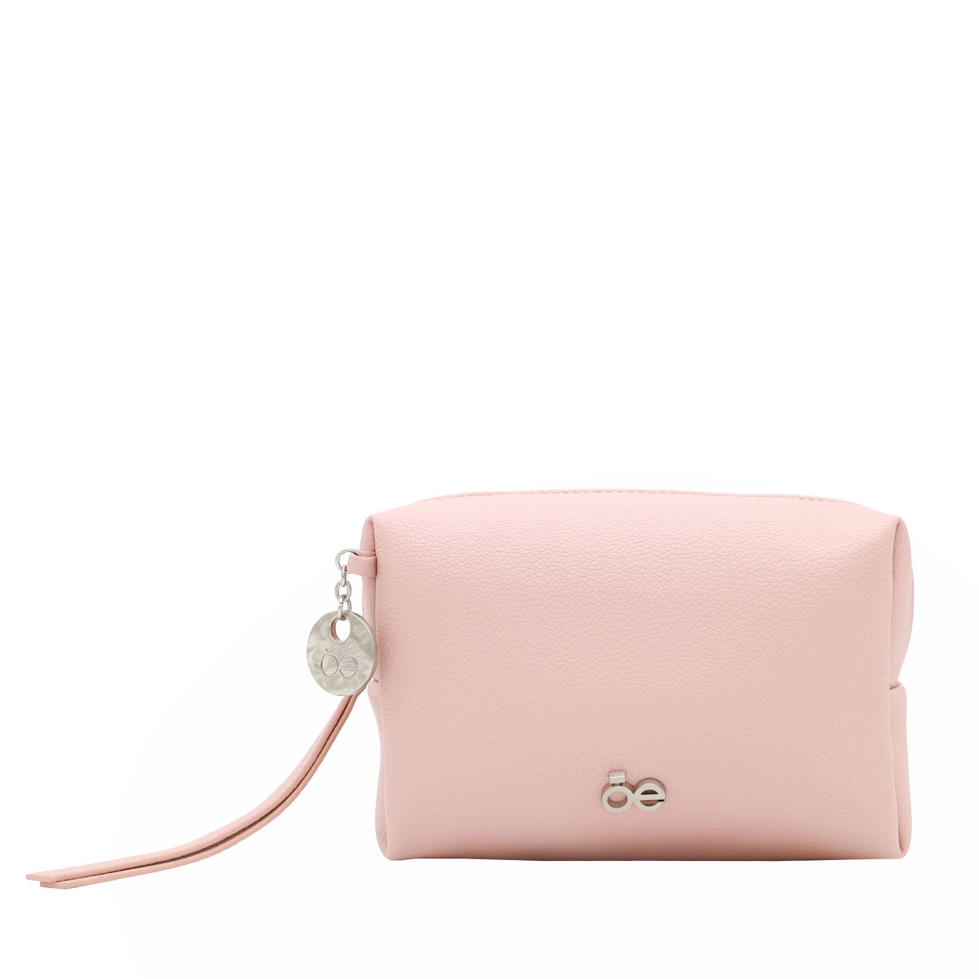 Cosmetiquera hecha con material vegano apariencia piel. Cuenta con cierre de larga duración. Tiene herraje metálico de monograma. Charm decorativo. Capacidad mediana de almacenaje.