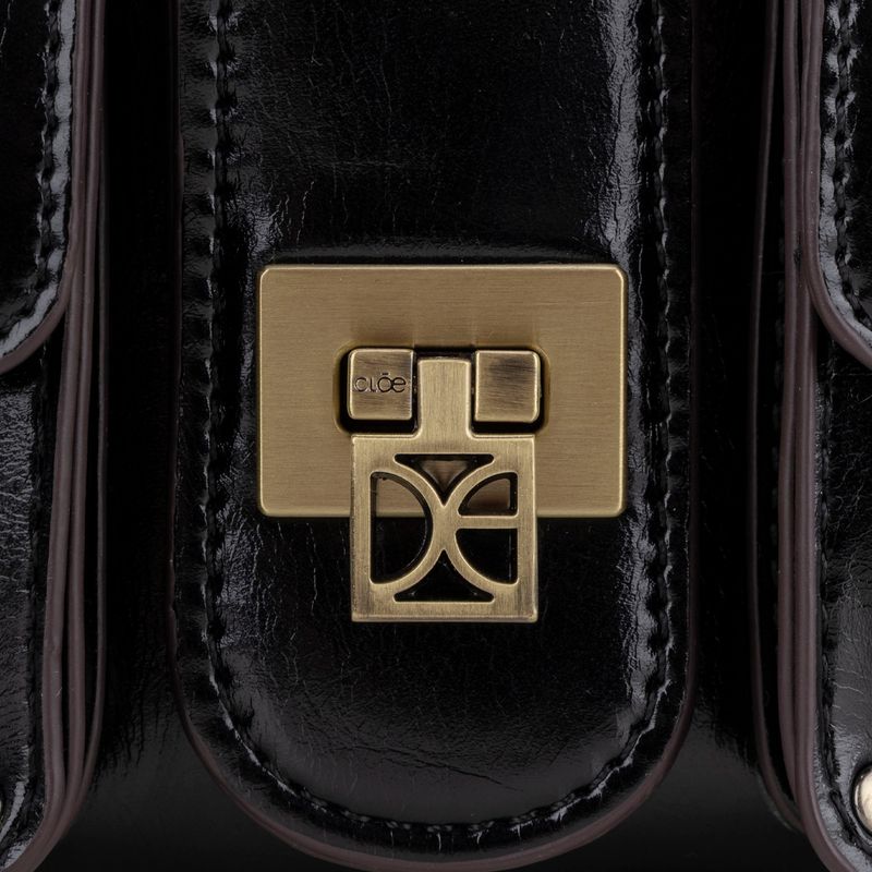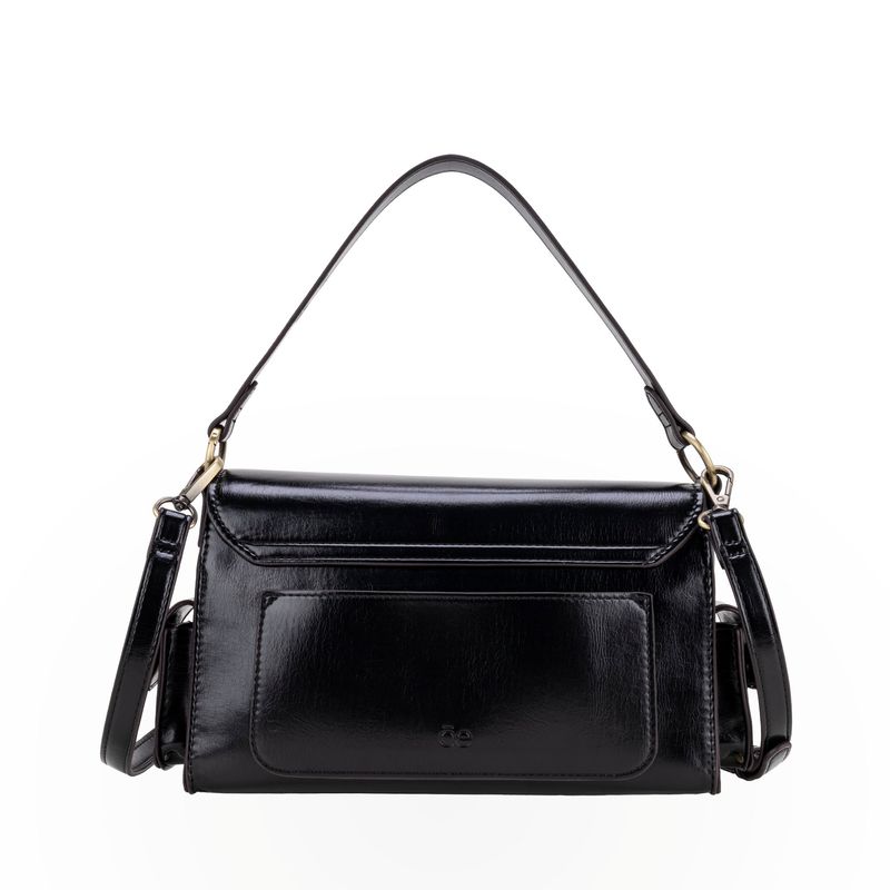 Lady Bag hecha con material vegano apariencia piel. Cuenta con compartimentos externos de fácil acceso. Tiene Solapa con broche metálico. Asa larga ajustable y removible.