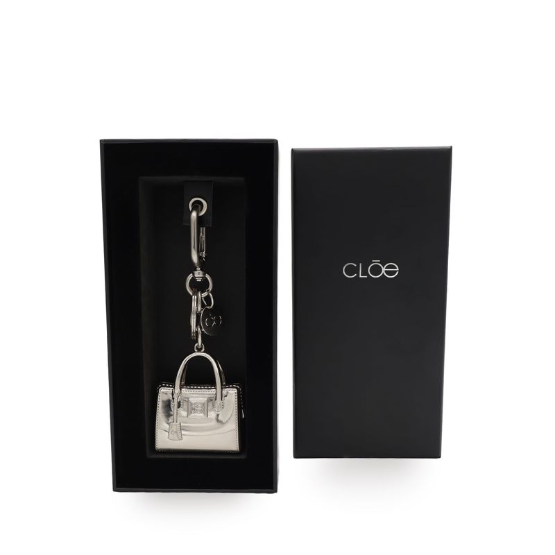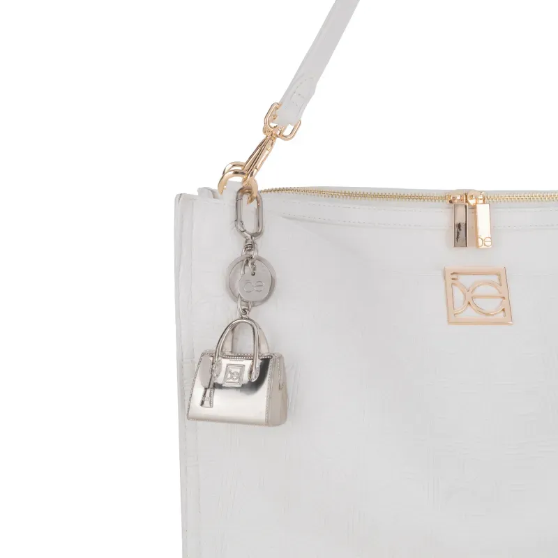 Llavero Charm De Bolso Acabado Metálico Color Brushed Nickel