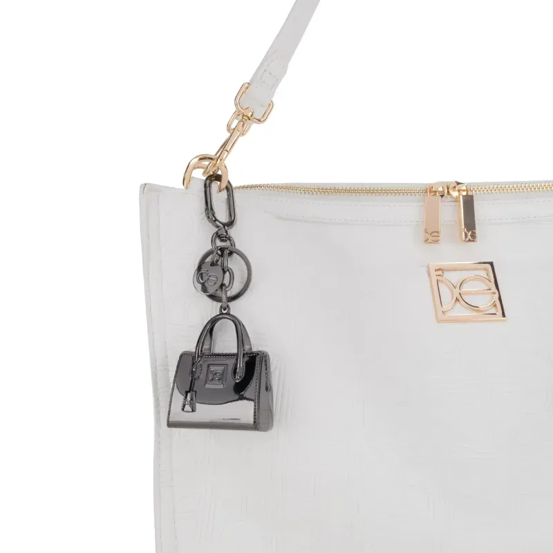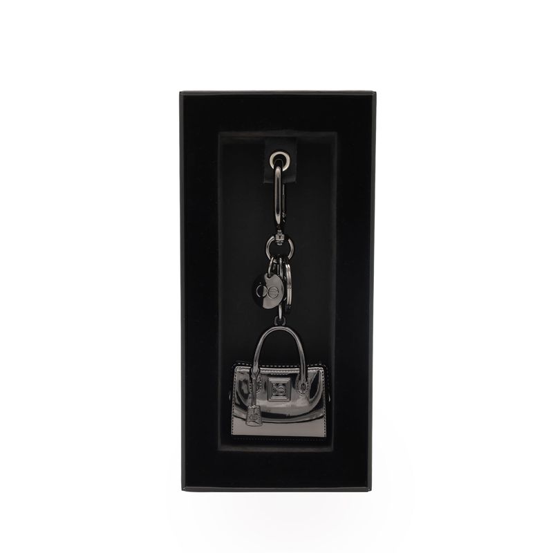 Llavero Charm De Bolso Acabado Metálico Color Gun Metal