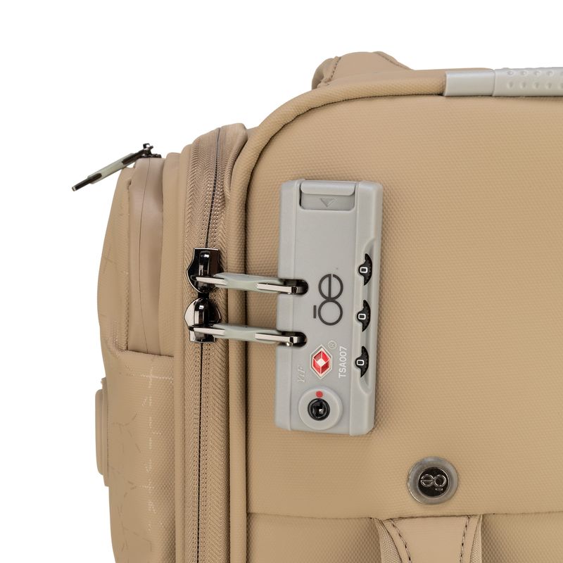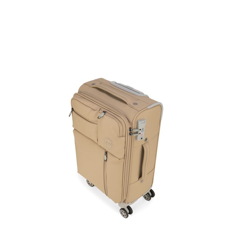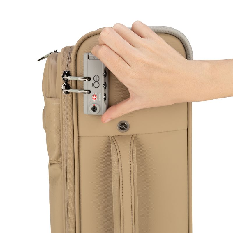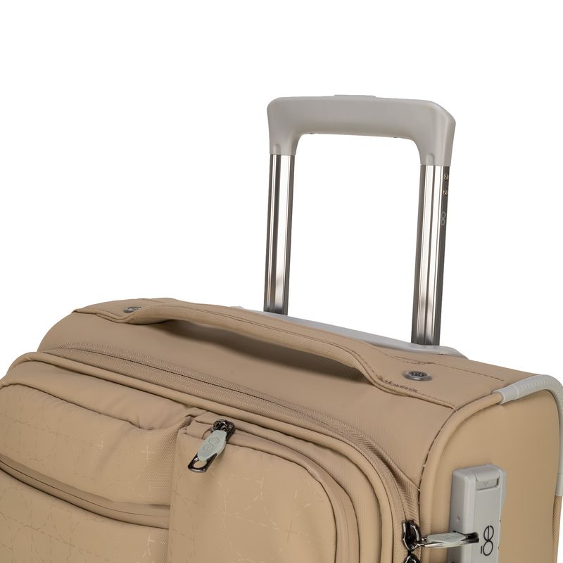 Equipaje Chico 20 plg de cabina hecho de material textil. Cuatro ruedas dobles y silenciosas, con movimiento 360º. Cerradura de combinación compatible con TSA. Bastón de tres alturas.