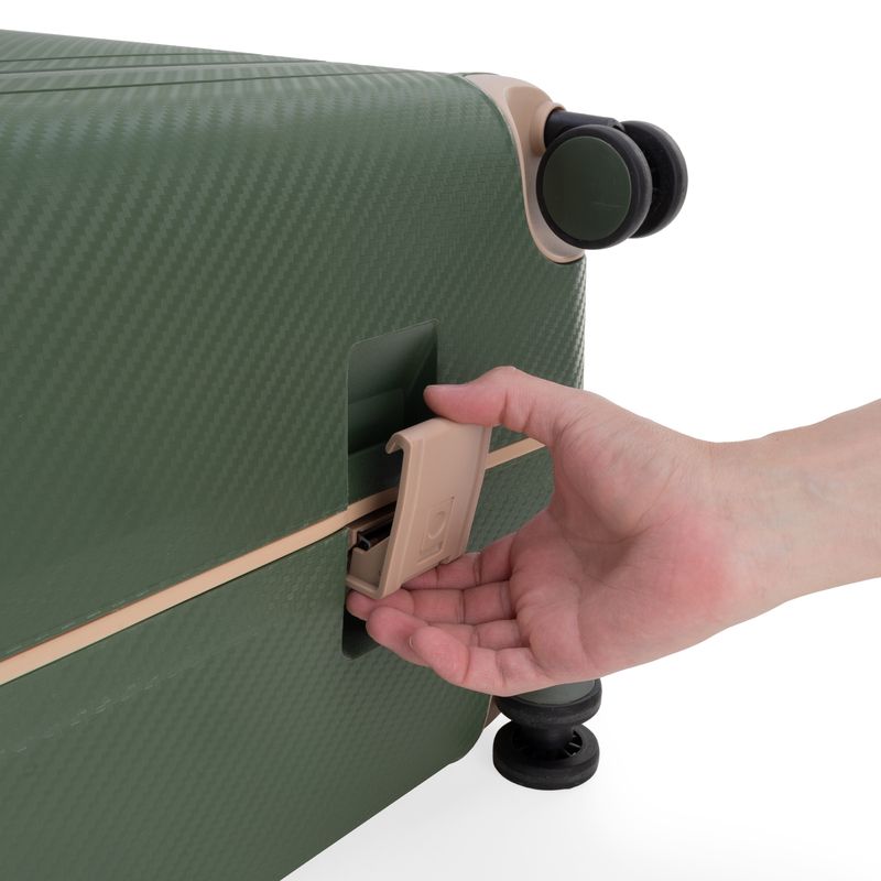 Equipaje de 28 plg hecho con material polipropileno. Cuenta con dos candado de seguridad TSA y dos candados extras para abrir. Ligero bastón de dos alturas. Tiene cuatro ruedas dobles y silenciosas con movimiento 360°.