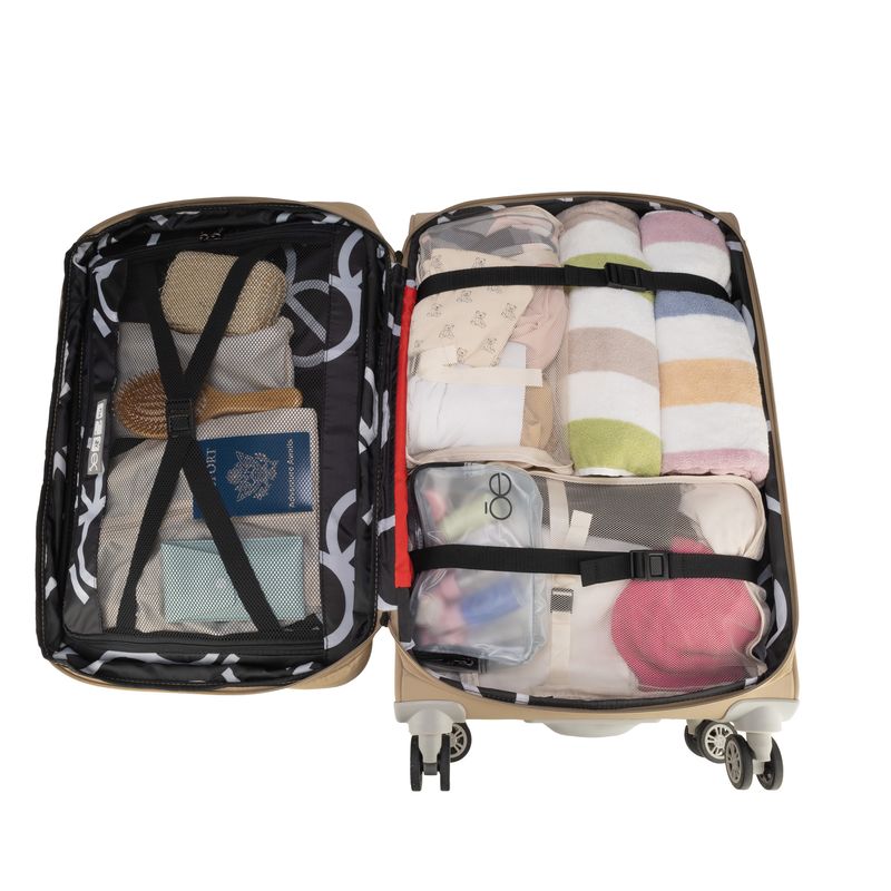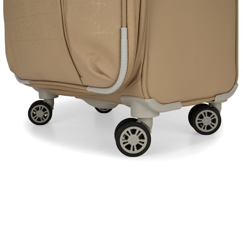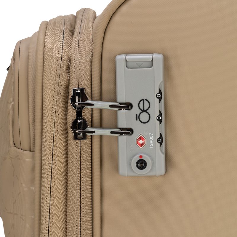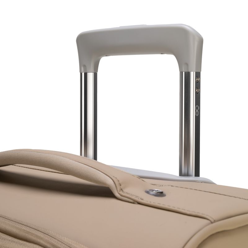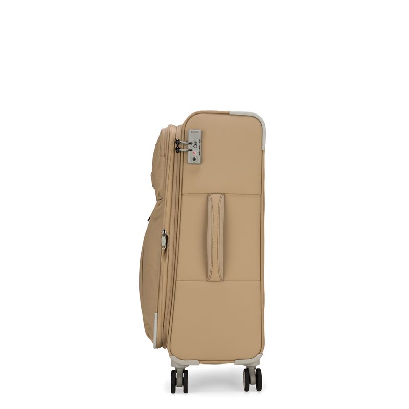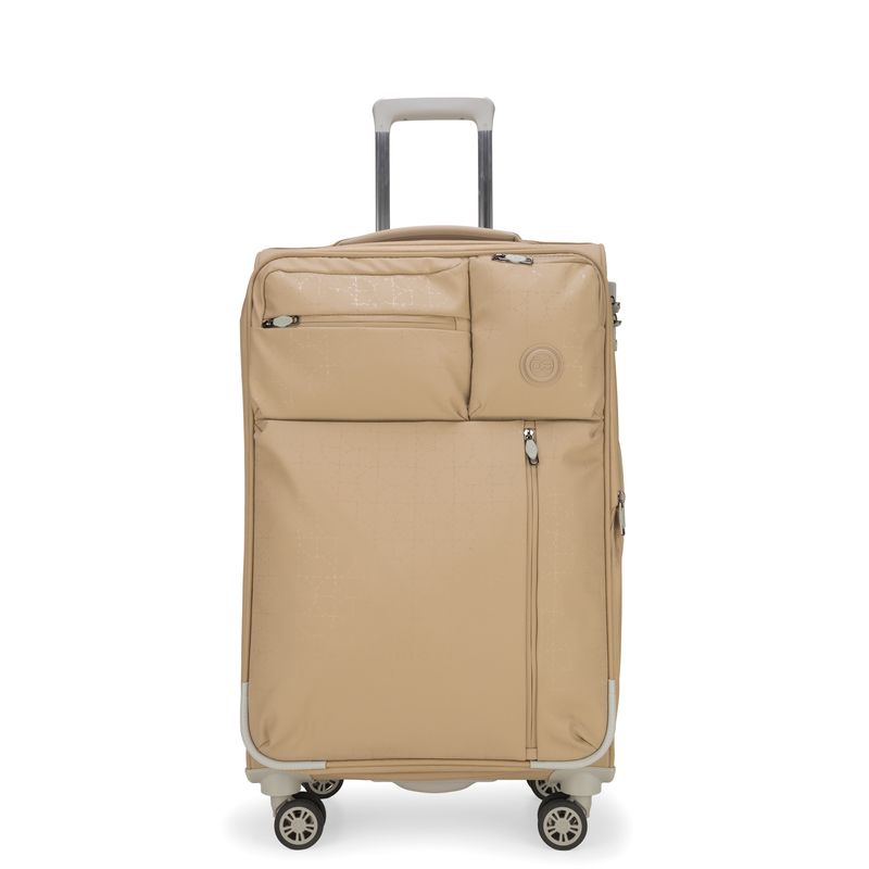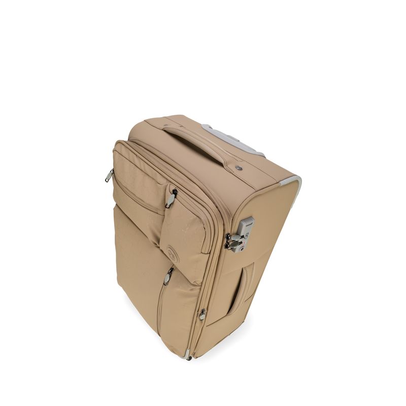 Equipaje Mediano 24 plg para documentar hecha de material textil. Cuatro ruedas dobles y silenciosas, con movimiento 360º. Cerradura de combinación compatible con TSA. Bastón de dos alturas. Cosmetiquera removible.