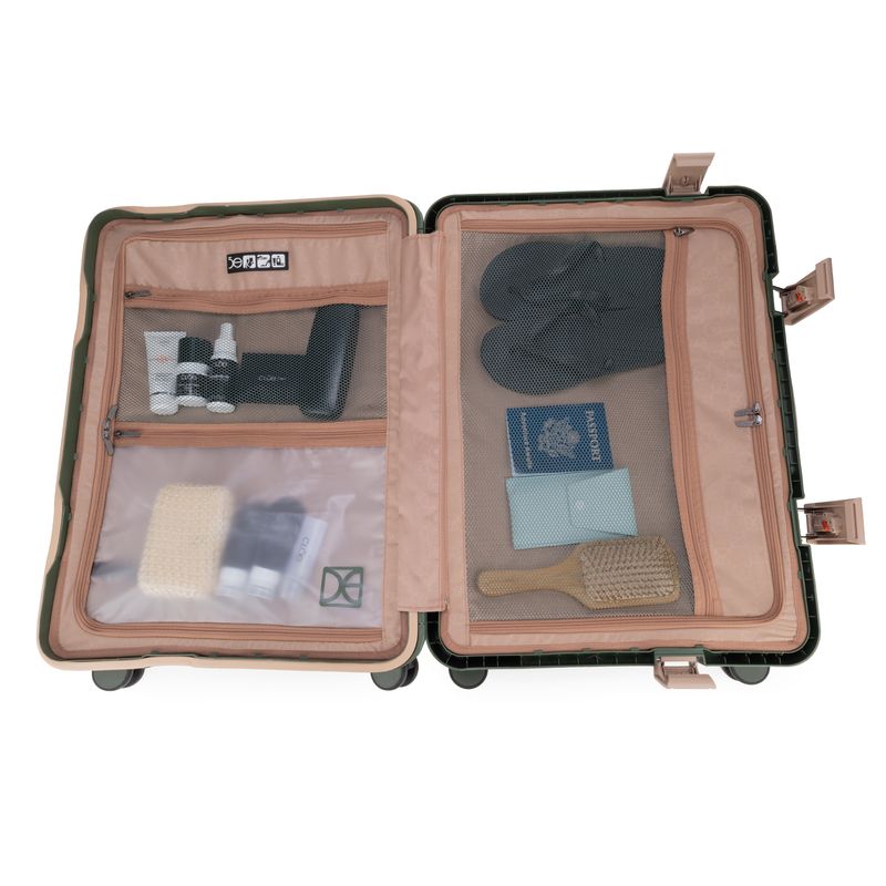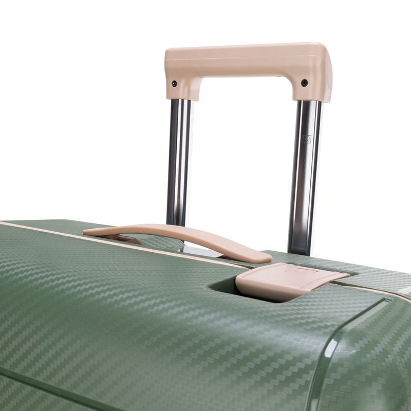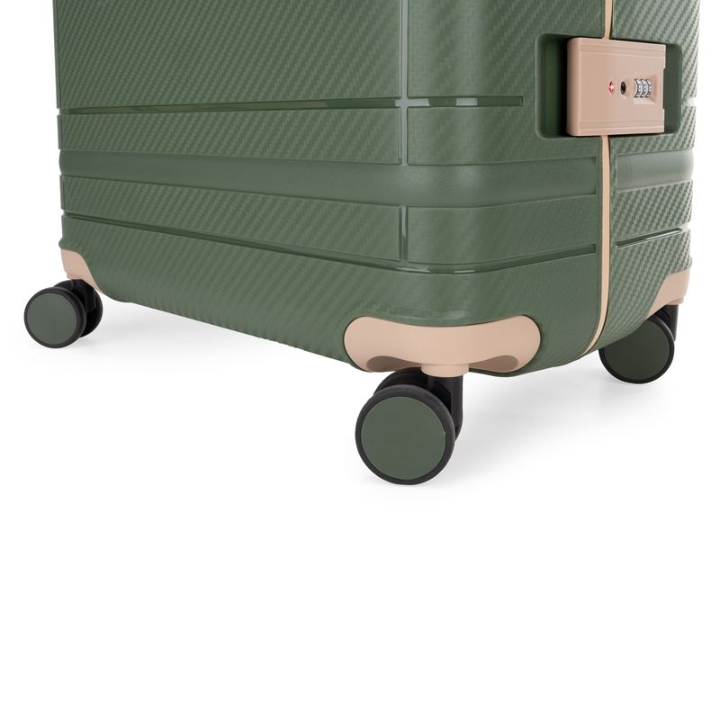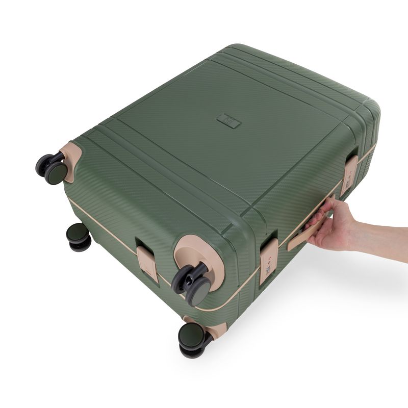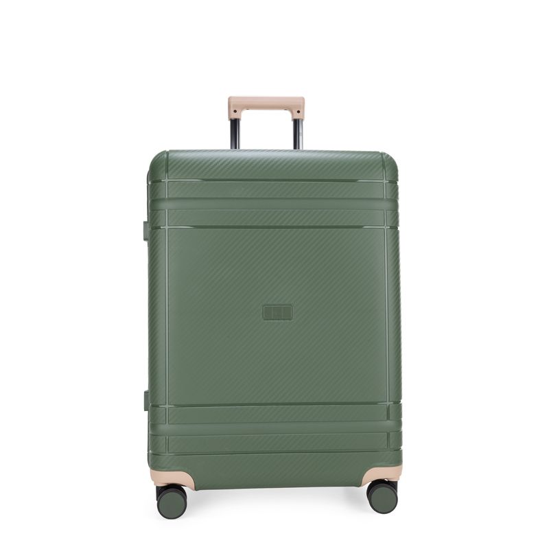 Equipaje de 24 plg hecho con material polipropileno. Cuenta con dos candado de seguridad TSA y dos candados extras para abrir. Ligero bastón de dos alturas. Tiene cuatro ruedas dobles y silenciosas con movimiento 360°.