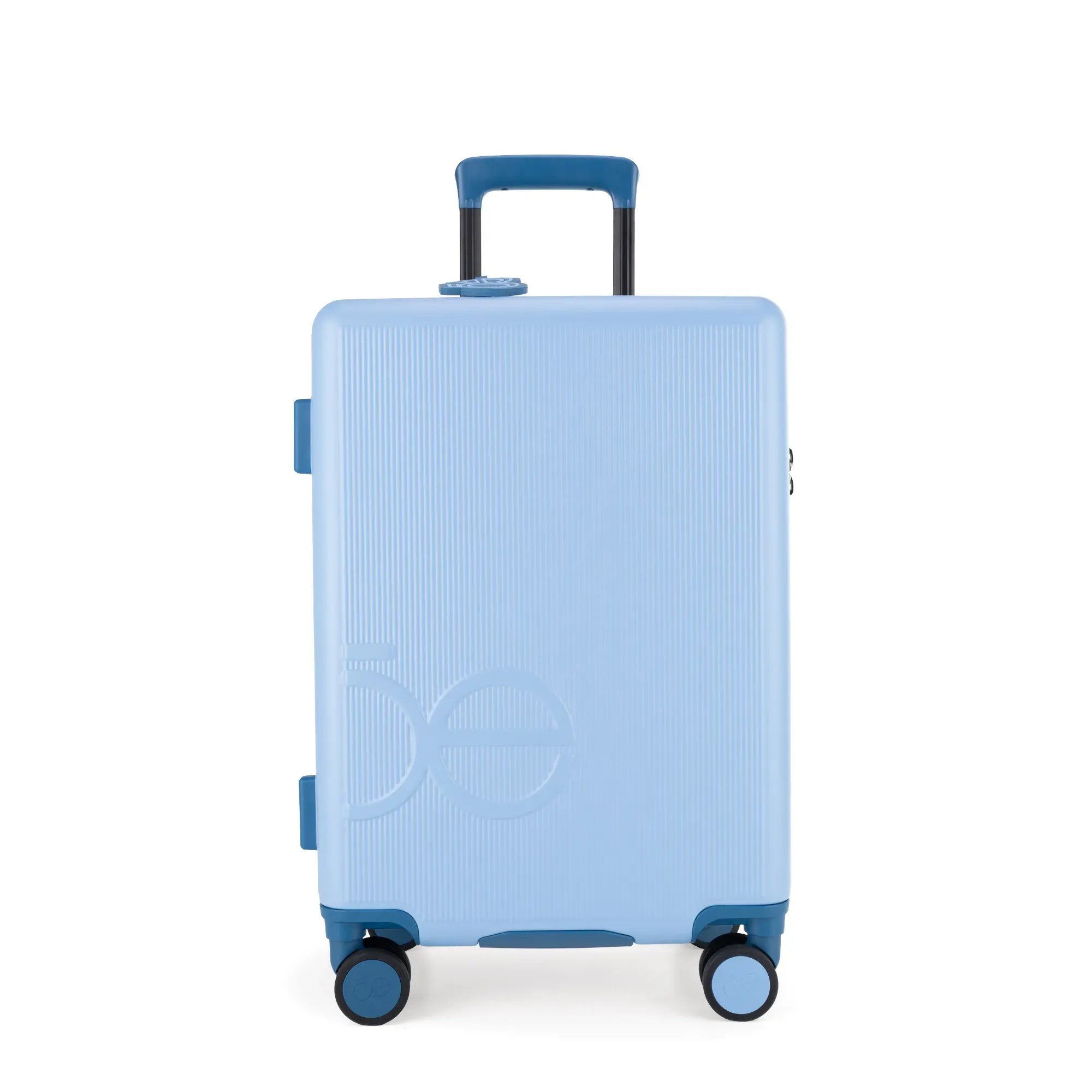 Equipaje vertical hecho con material policarbonato rígido. Cuenta con candado por combinación de seguridad TSA. Tiene ligero bastón de tres alturas. Cuatro ruedas dobles giratorias con movimiento 360°. Identificador desprendible.