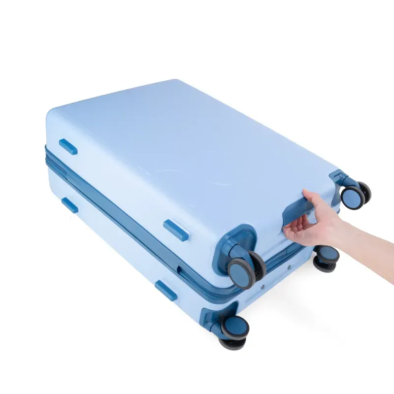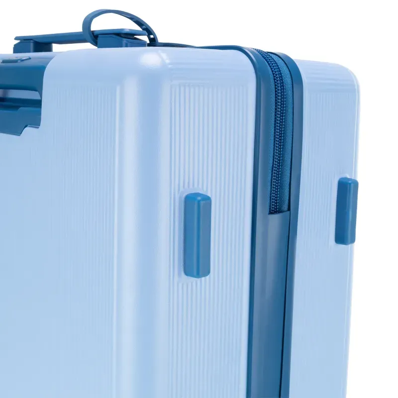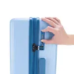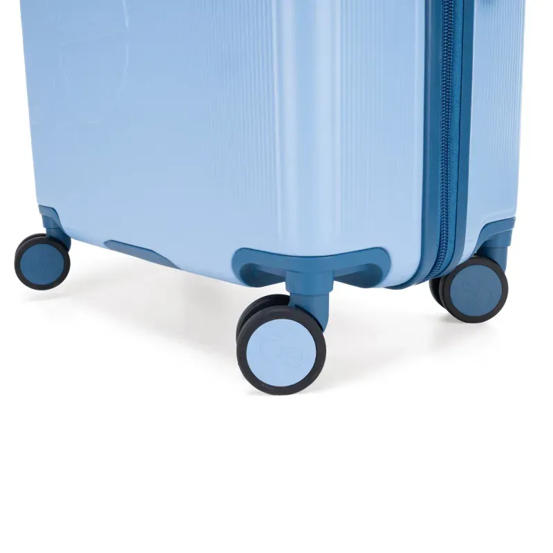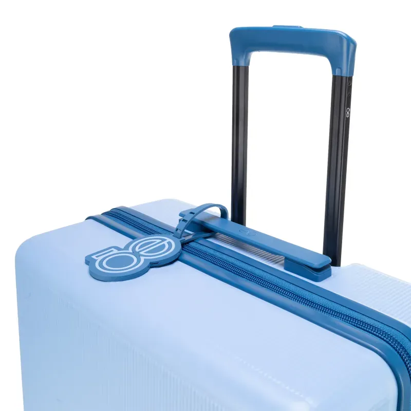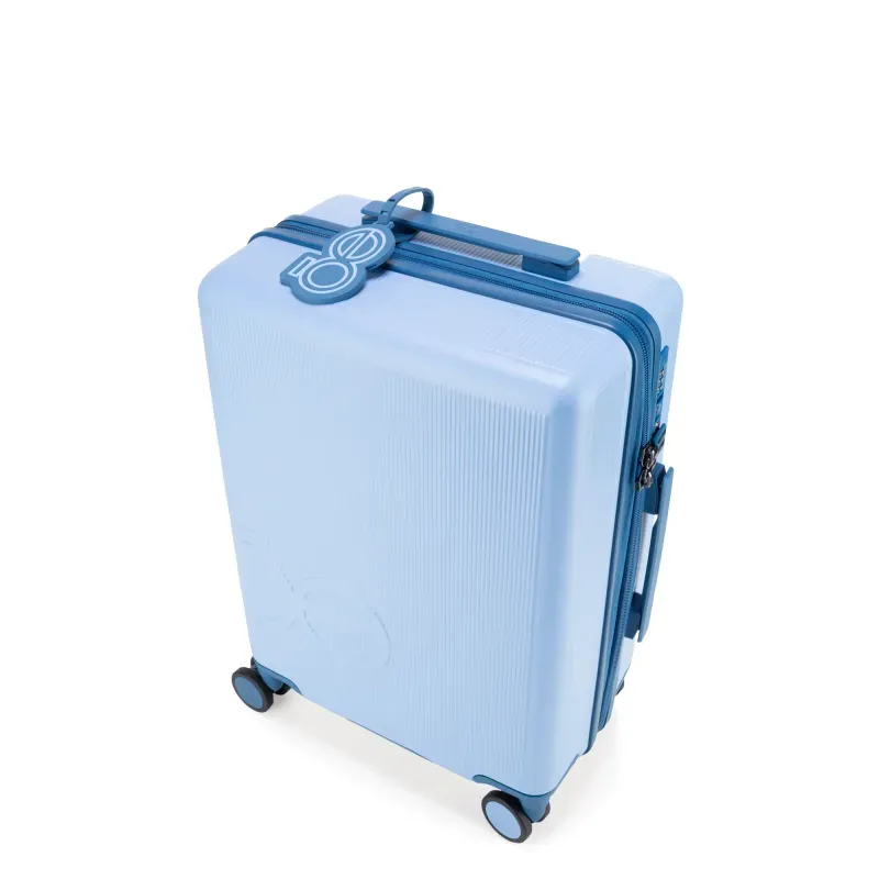 Equipaje vertical hecho con material policarbonato rígido. Cuenta con candado por combinación de seguridad TSA. Tiene ligero bastón de dos alturas. Cuatro ruedas dobles giratorias con movimiento 360°. Identificador desprendible. Incluye funda textil protectora.