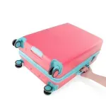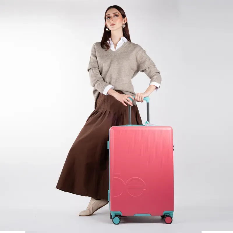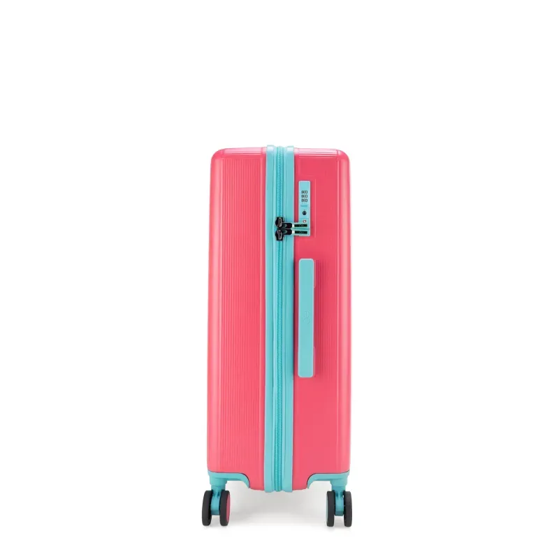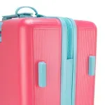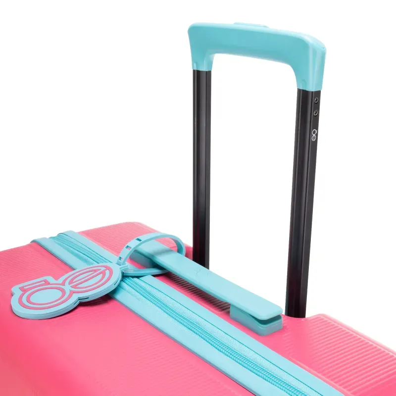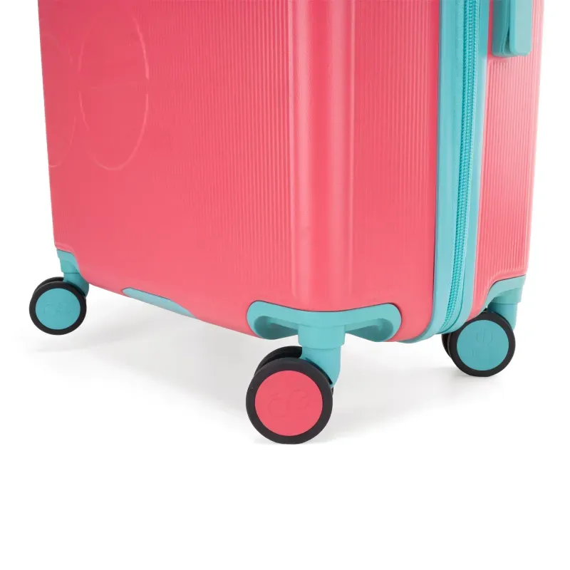 Equipaje vertical hecho con material policarbonato rígido. Cuenta con candado por combinación de seguridad TSA. Tiene ligero bastón de dos alturas. Cuatro ruedas dobles giratorias con movimiento 360°. Identificador desprendible. Incluye funda textil protectora.