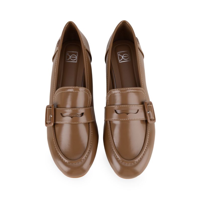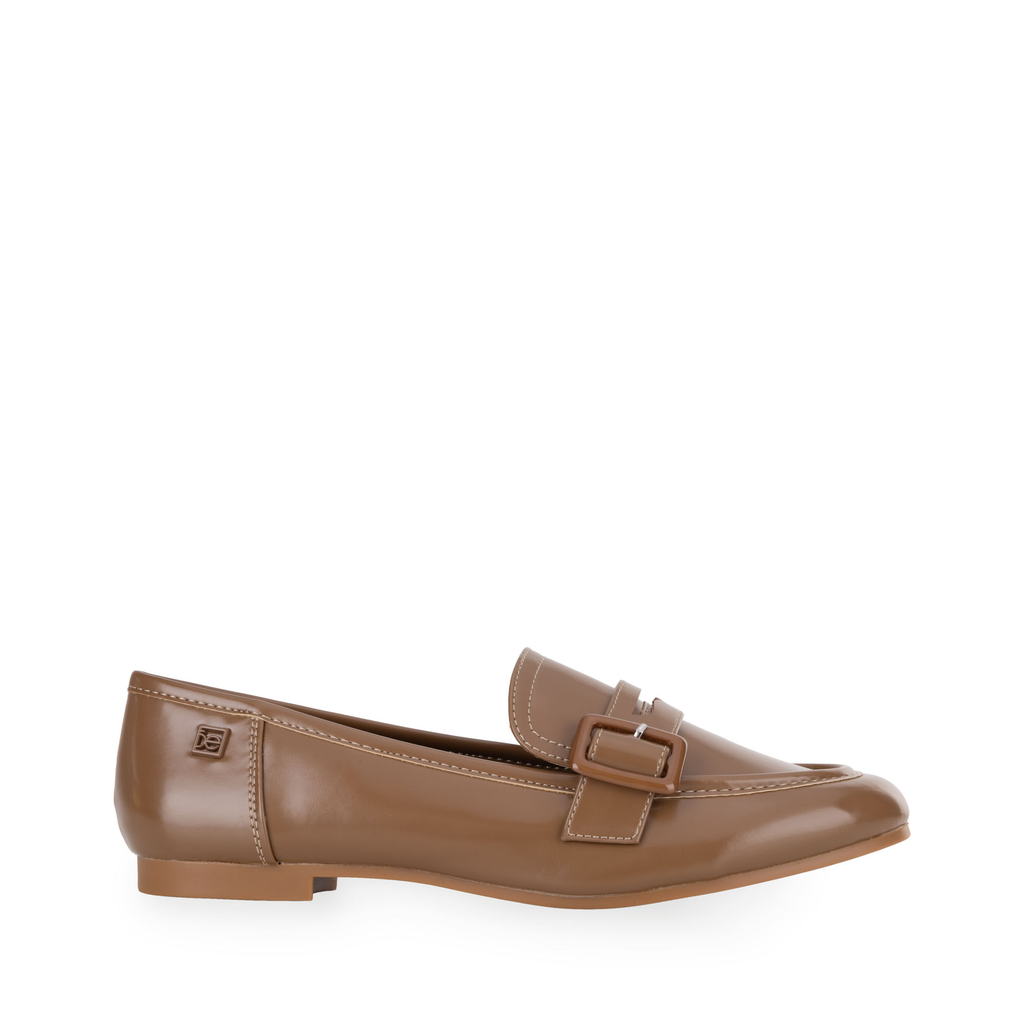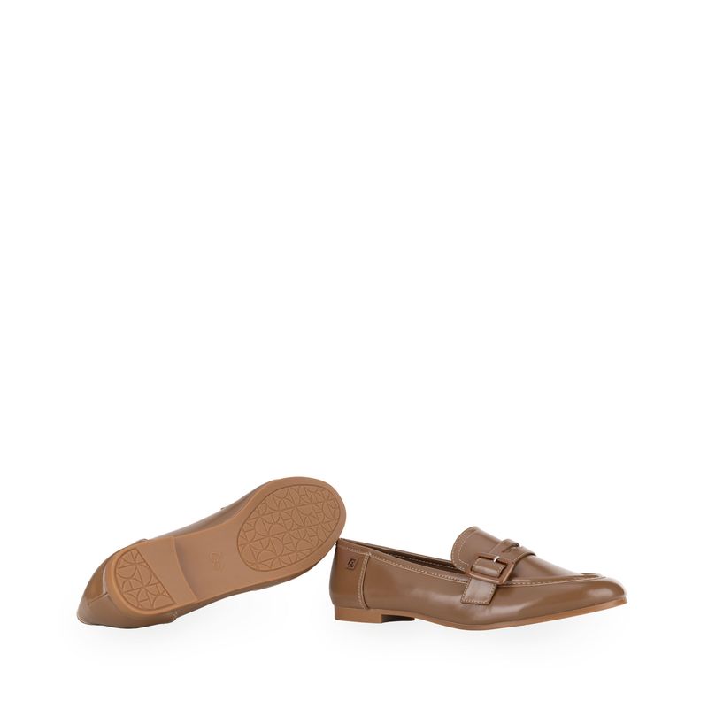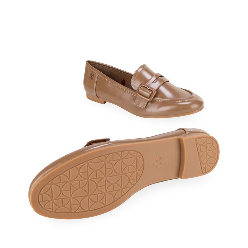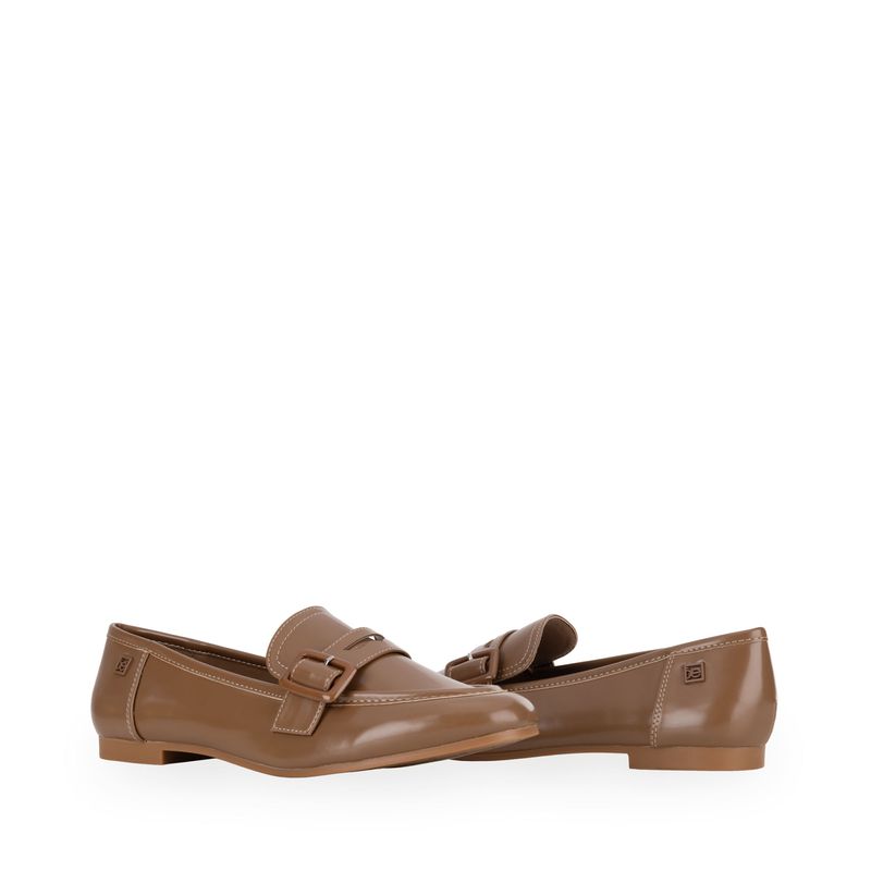 Mocasín hecho con material vegano apariencia piel. Cuenta con Memory foam en la plantilla para mayor comodidad. Hebilla ajustable. Tacón ligero de mayor comodidad. Herraje de monograma. Diseño de punta cuadrada.
