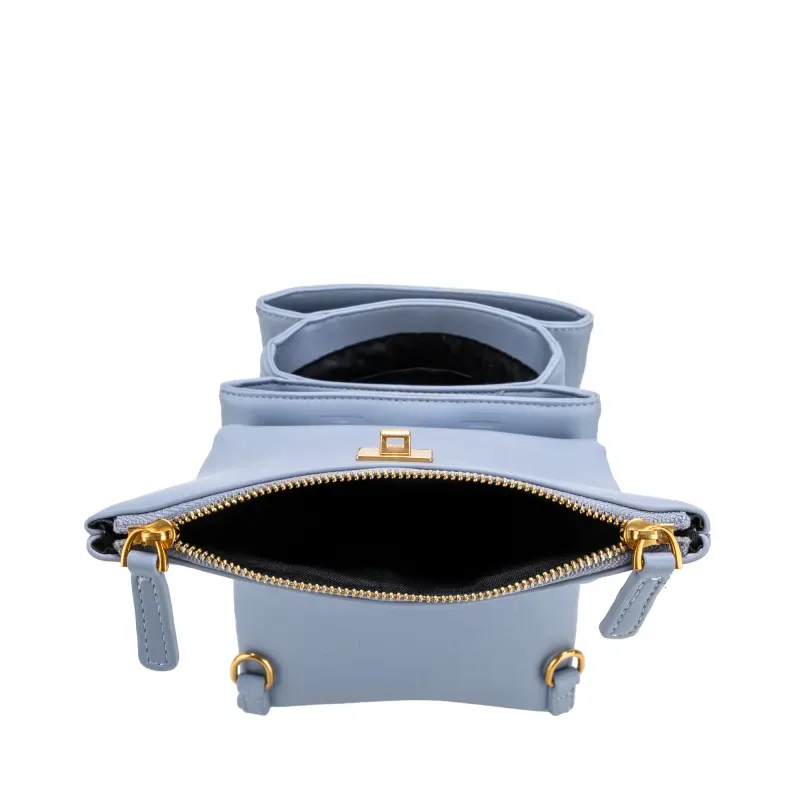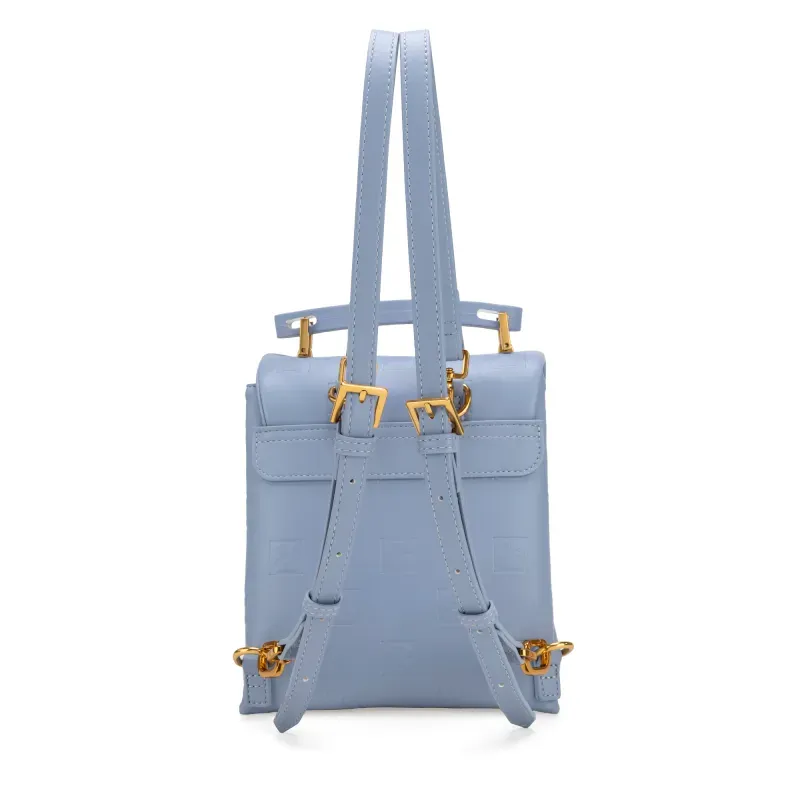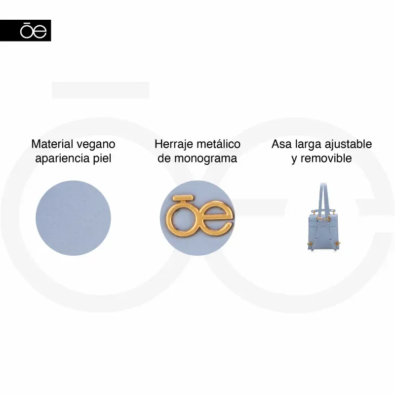Backpack hecho con material vegano. Cuenta con broche de presión. Cierre metálico de larga duración. Tiene asas traseras largas ajustables y removibles.