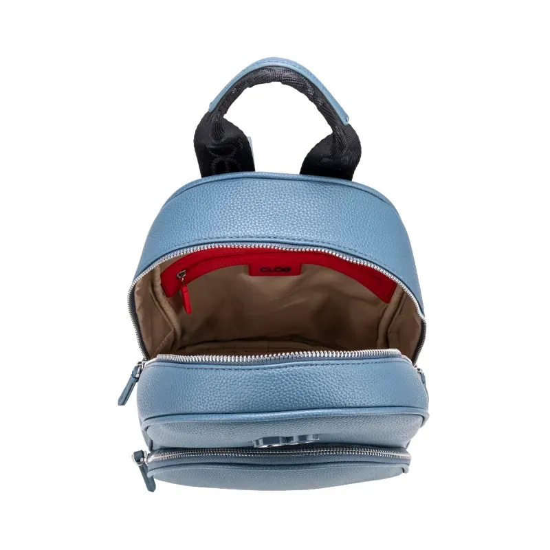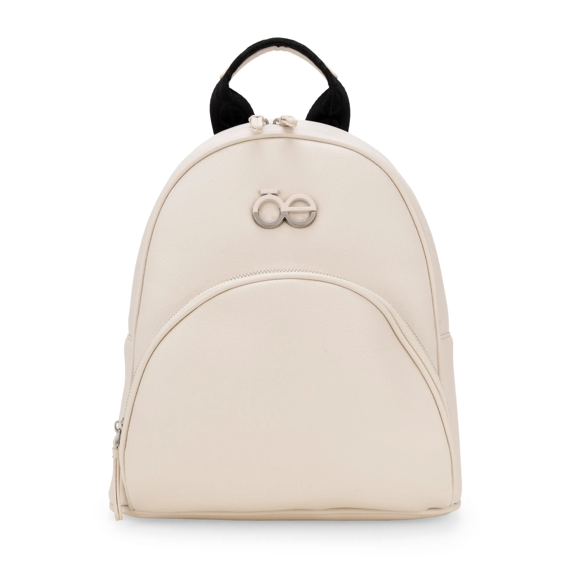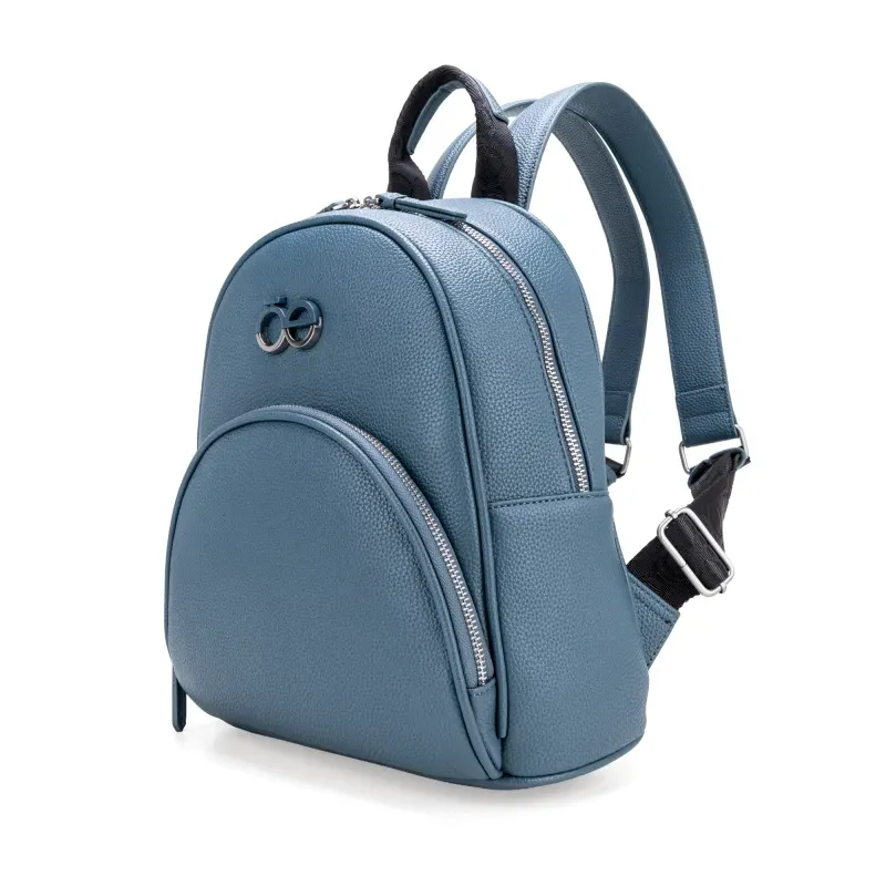 Backpack hecha con material vegano apariencia piel. Cuenta con cierre metálico de larga duración. Herraje de monograma. Tiene compartimento frontal con cierre. Asas traseras ajustables.