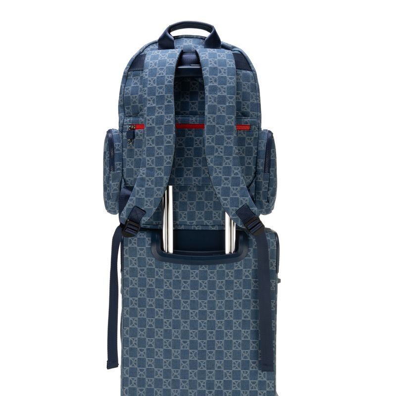 Backpack porta laptop de 15 plg hecha de material textil. Cuenta con cierres de larga duración. Compartimentos laterales. Compartimento frontal y posterior. Asas traseras ajustables.