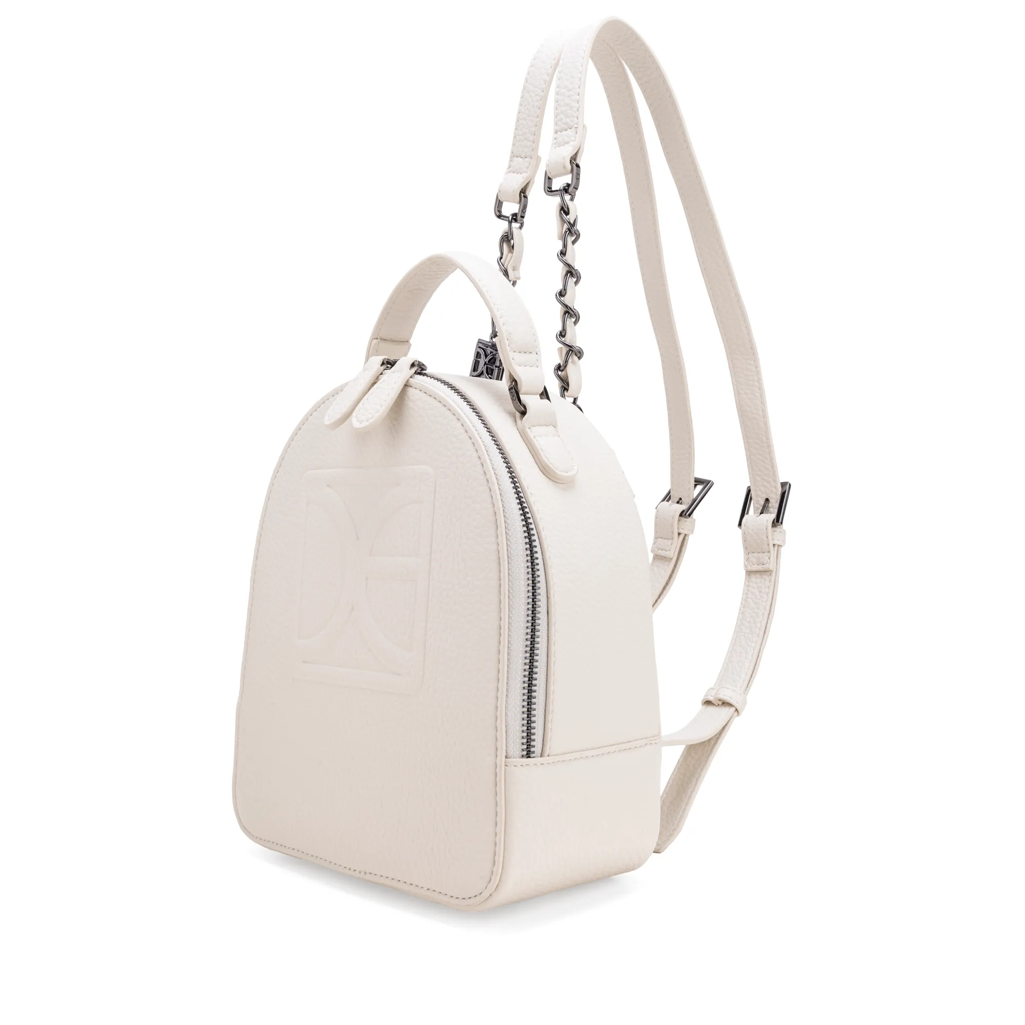 Backpack hecha de material vegano. Cuenta con asas traseras ajustables con herraje de monograma. Asa corta. Tiene monograma en relieve.