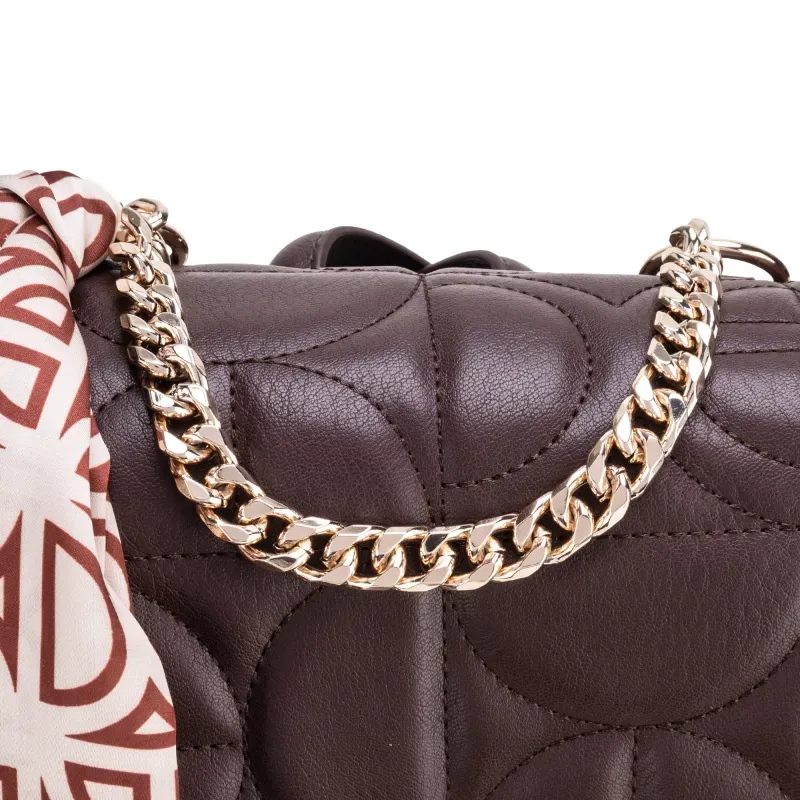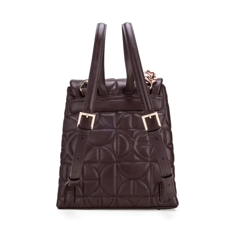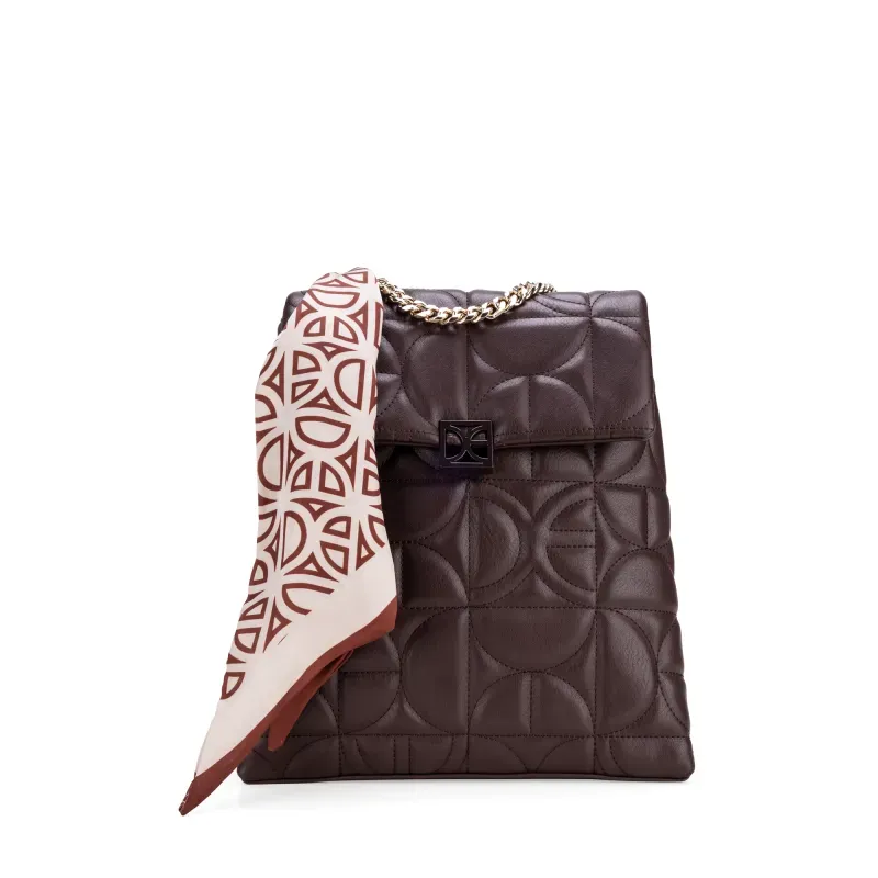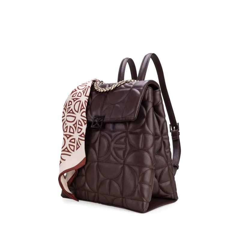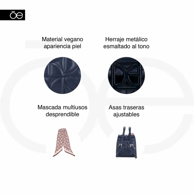 Backpack hecho con material vegano. Incluye mascada multiusos removible. Herraje metálico de monograma. Cuenta con asas traseras ajustables. Asa corta. Monograma bordado.