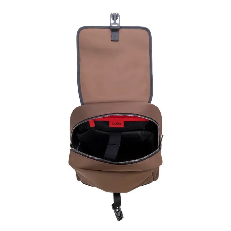 Backpack hecha con material textil. Cuenta con hebilla magnética. Porta laptop de 15 plg. Apilable en bastón de equipaje. Cierre metálico de larga duración. Asas traseras ajustables.