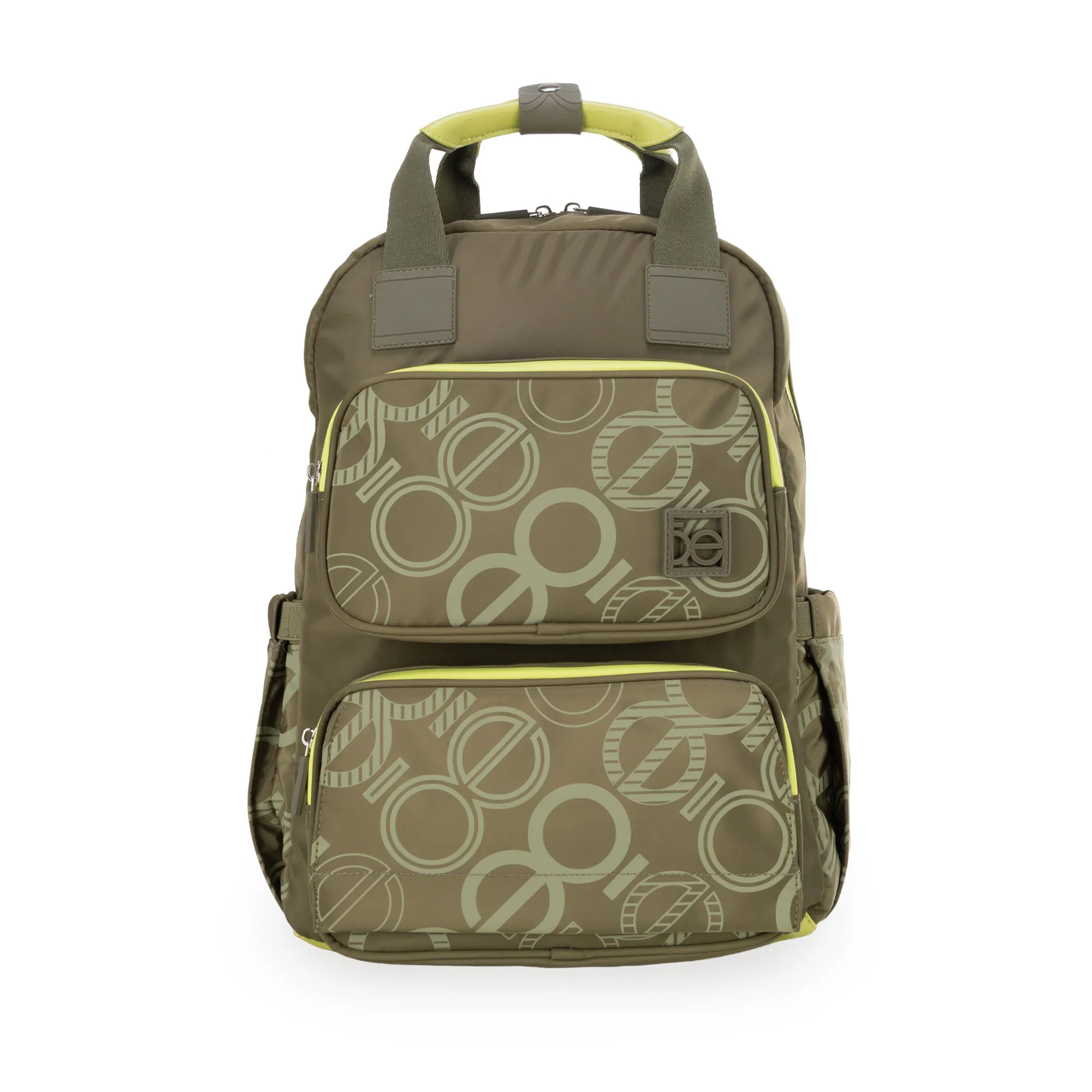 Pañalera Backpack hecha con material textil. Incluye cambiador plegable. Cosmetiquera interna desprendible. Tiene múltiples compartimientos internos. Ganchos para colgar en carriola. Asas traseras ajustables. Rubber de monograma.