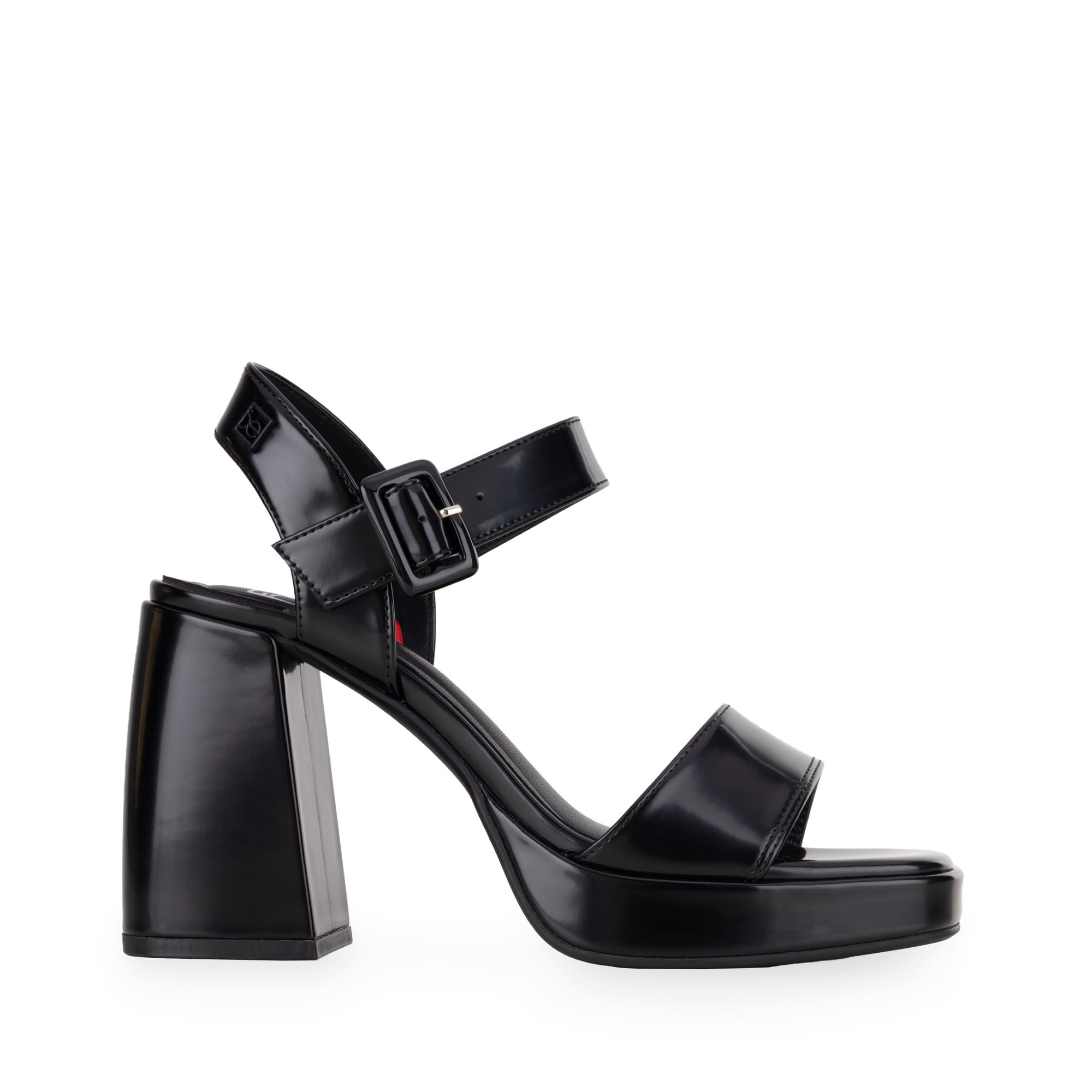 Plataforma hecho con material vegano apariencia piel. Cuenta con Memory foam en la plantilla para mayor comodidad. Hebilla ajustable. Tacón ancho de mayor comodidad. Herraje de monograma. Diseño de punta cuadrada.