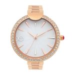 Reloj Análogo Para Dama Con Carátula Con Acabado De Madre Perla Y Extensible De Acero Inoxidable Color Copper