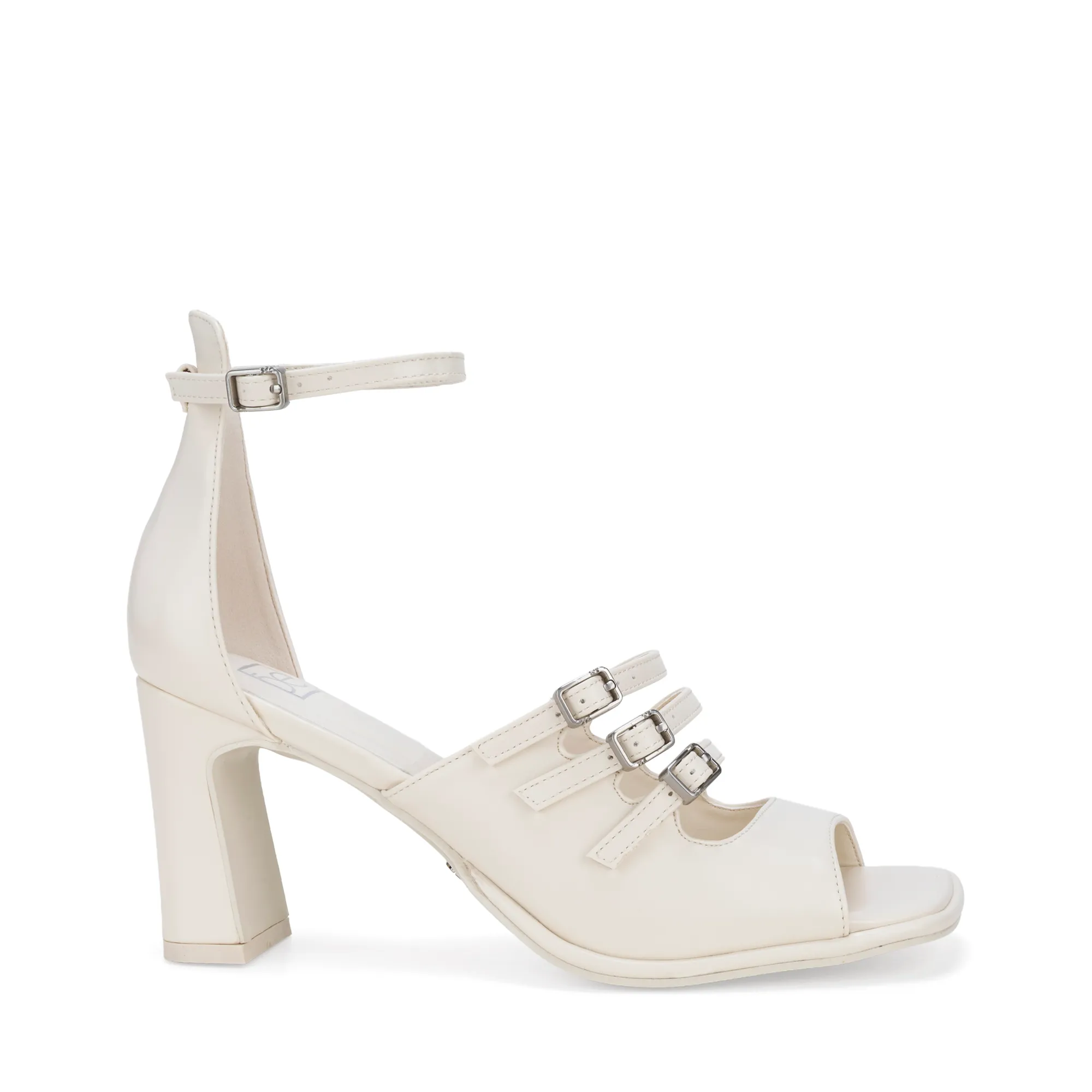 Sandalia Abotinada hecha de material vegano. Cuenta con hebillas ajustables. Herraje metálico.