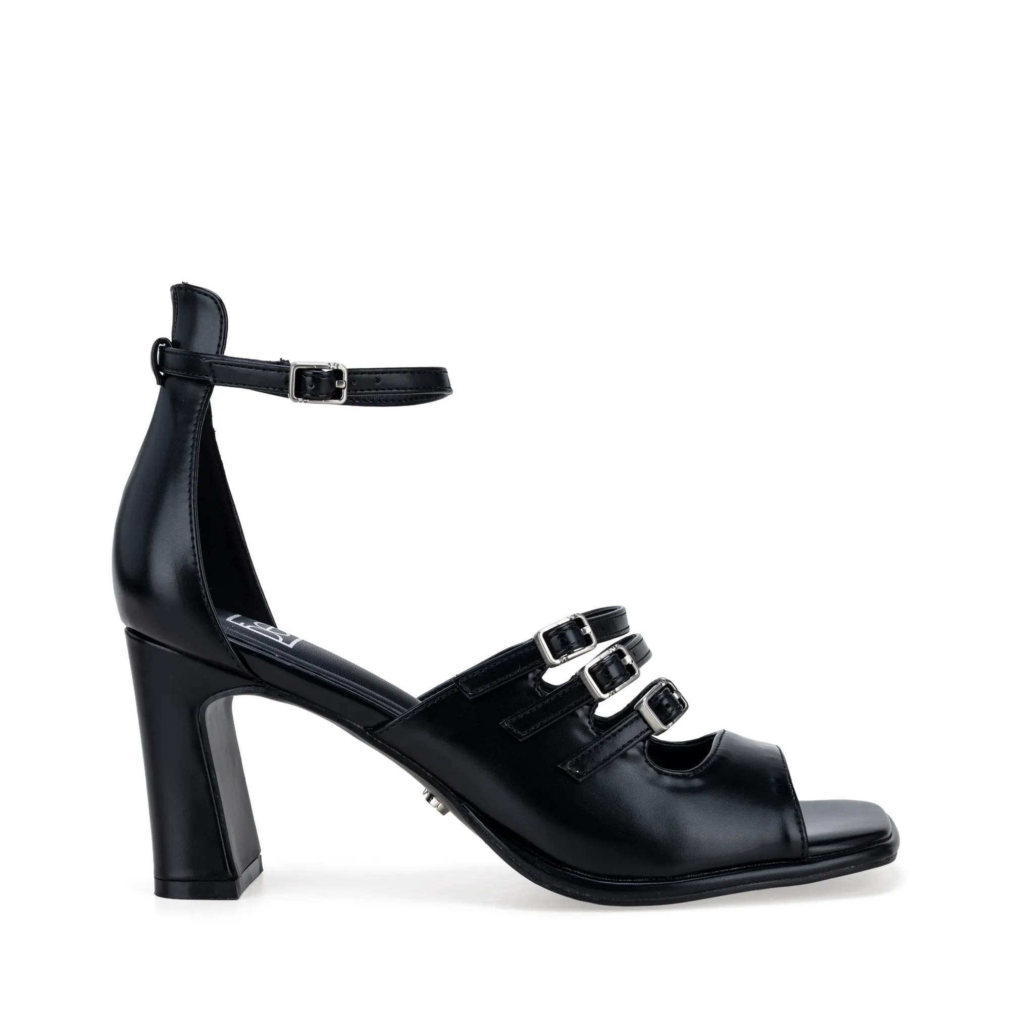 Sandalia De Tacón Ancho Con Hebillas Color Negro