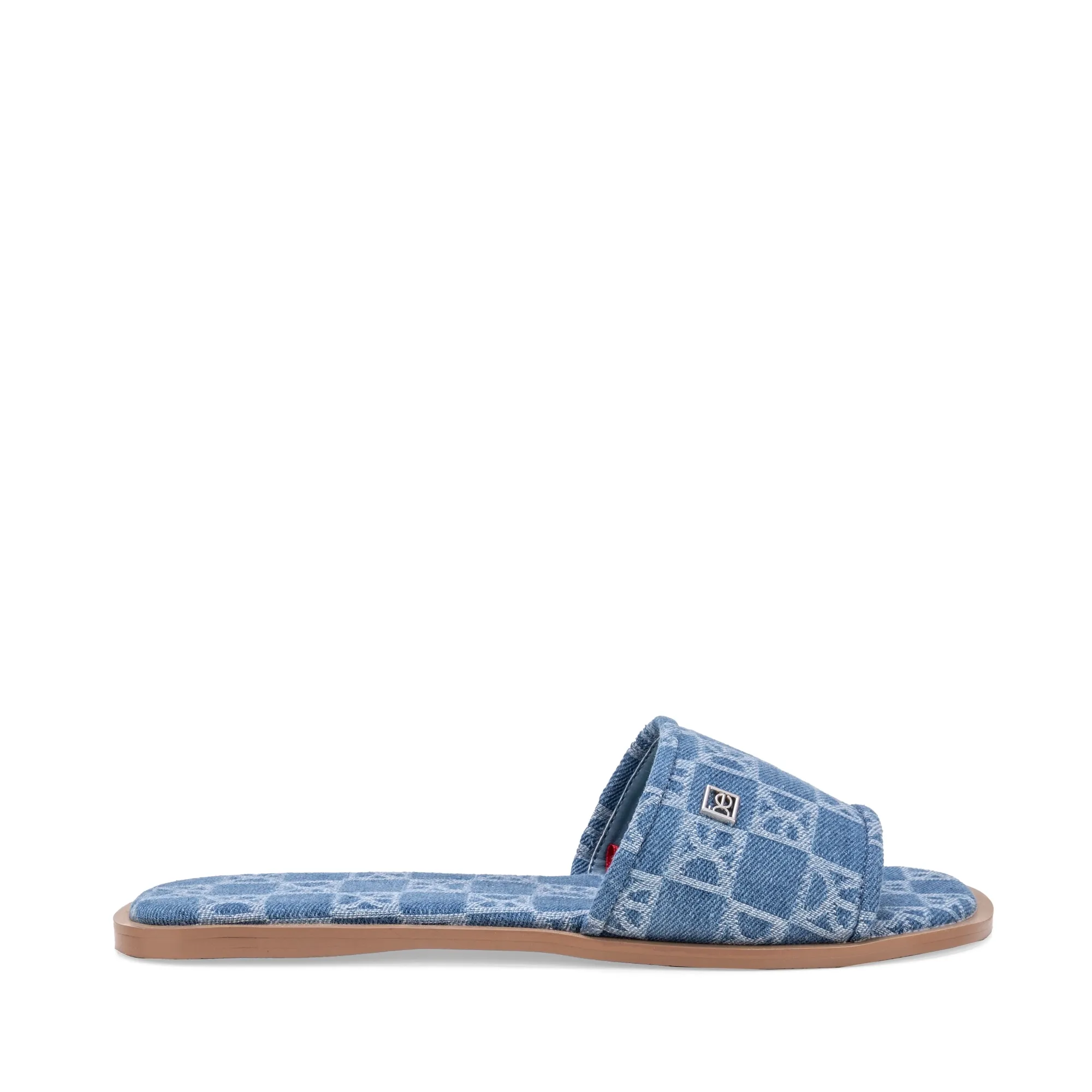 Sandalia hecha con material textil. Cuenta con un diseño de alta tendencia. Herraje metálico de monograma