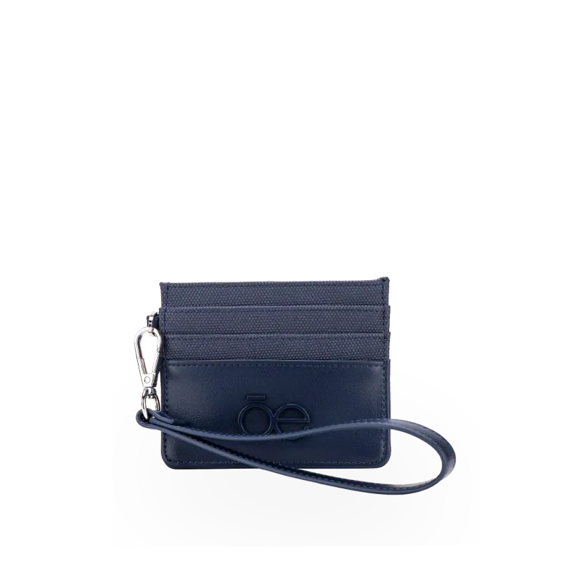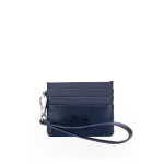 Tarjetero hecho de material vegano. Cuenta con maneral de fácil uso desprendible. Herraje metálico de monogrma.