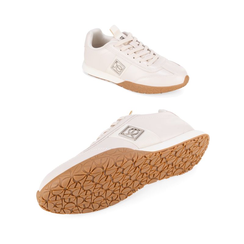 Sneaker hecho con material vegano apariencia piel. Cuenta con agujetas ajustables al tono. Suela Antiderrapante.