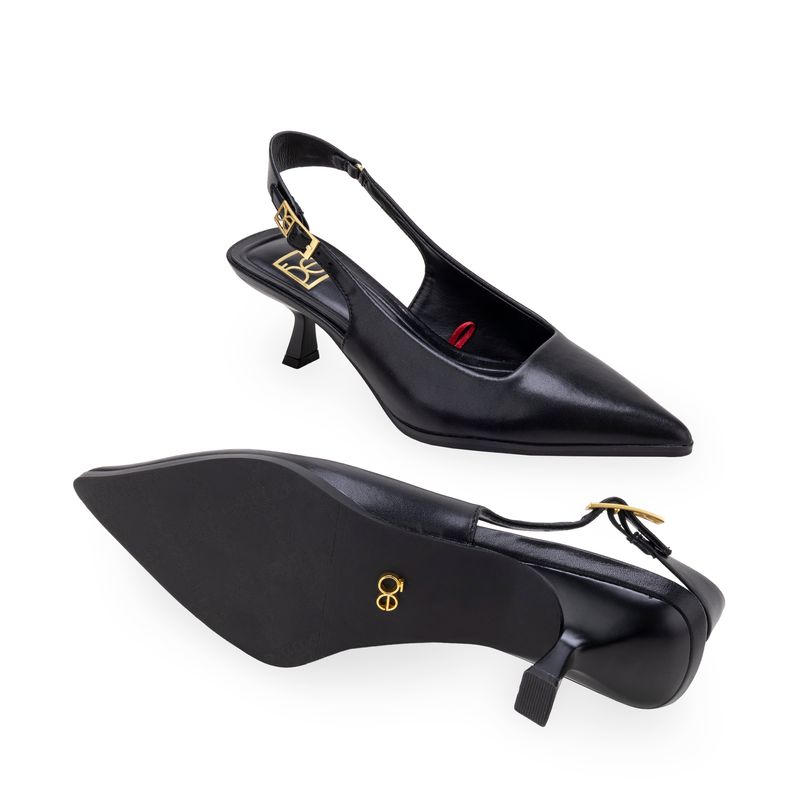 Zapatilla Puntal Destalonada Tacón Pequeño Color Negro
