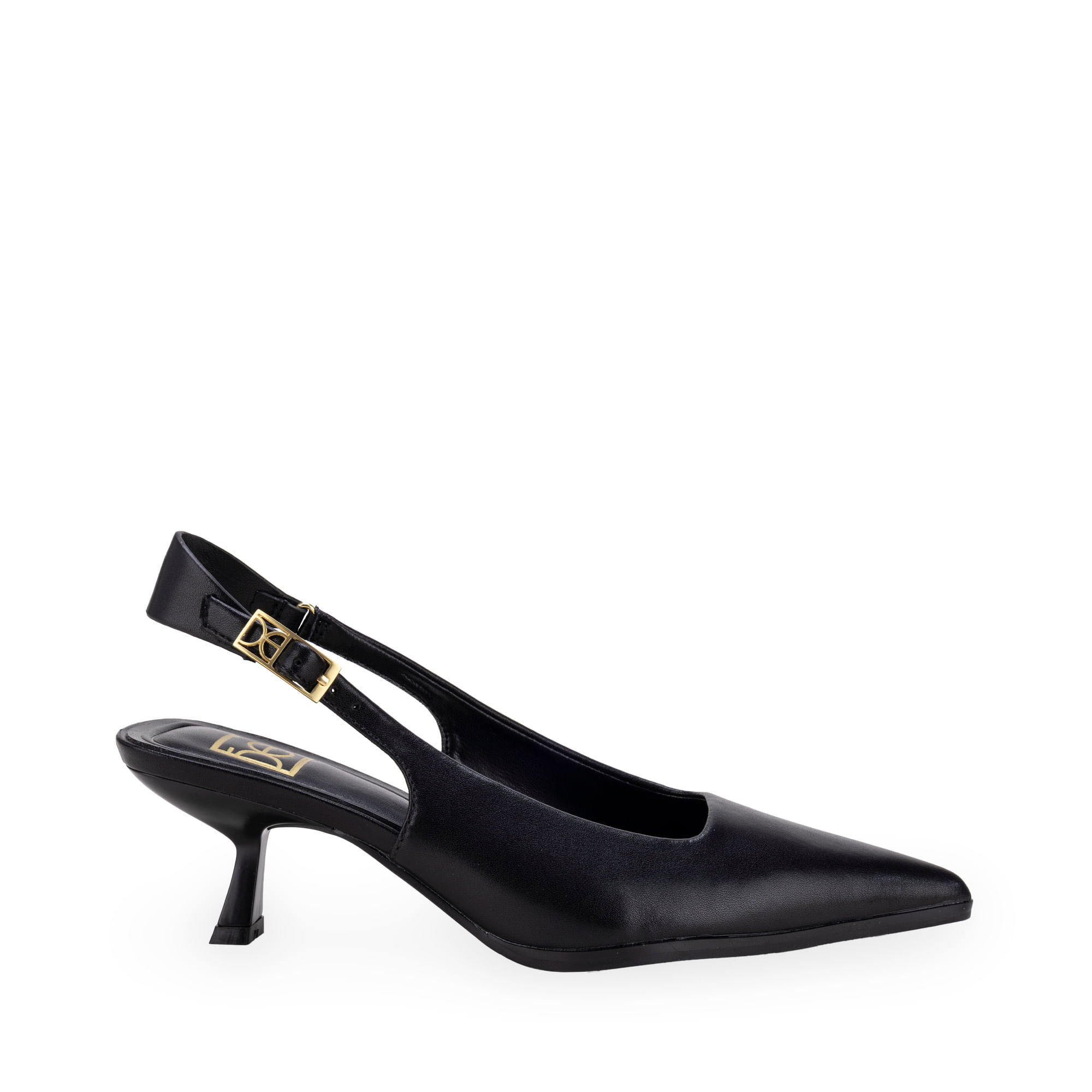 Zapatilla hecha con material vegano apariencia piel. Cuenta con diseño puntal de alta tendencia. Tacón pequeño de mayor comodidad. Pulsera ajustable en tobillo.