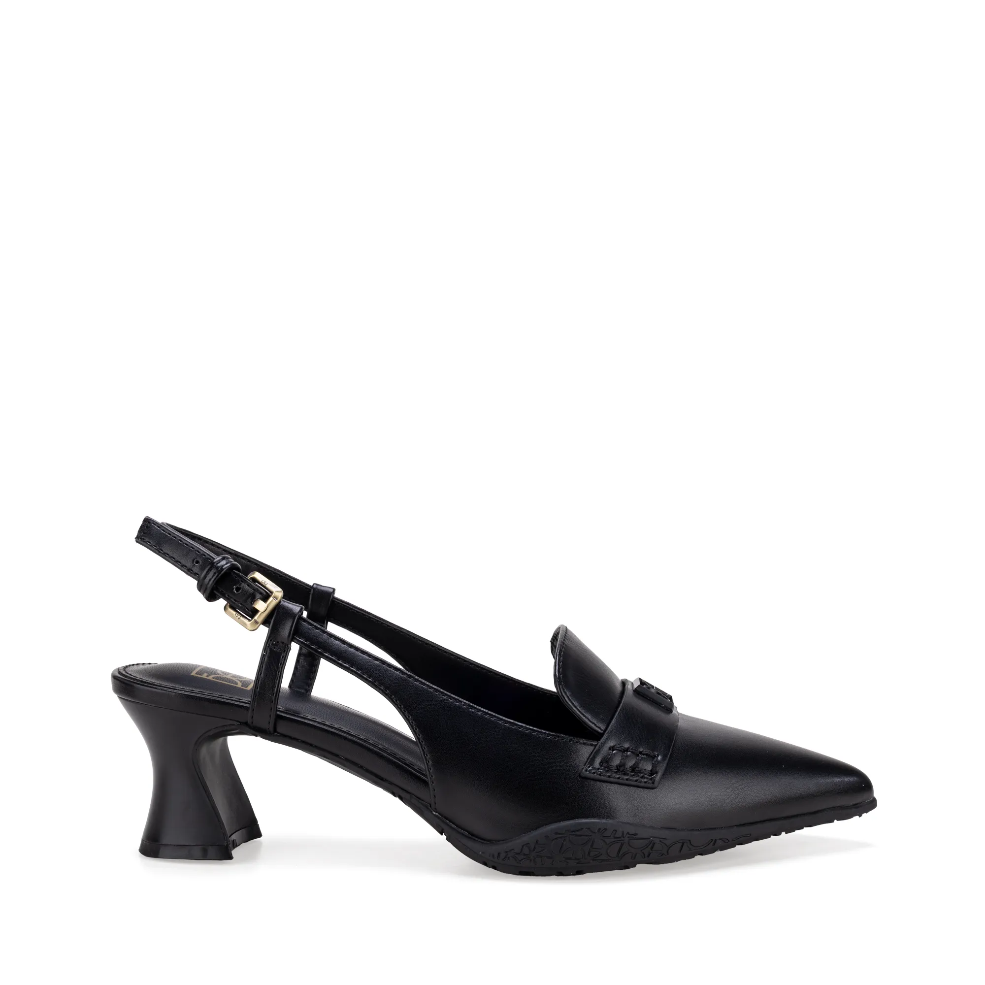 Zapatillas hechas con material vegano apariencia piel. Cuentan con tacpon ancho de mayor comodidad. Herraje metálico esmaltado al tono. Hebilla metálica ajustable. Suela antiderrapante. Tiene Comfy Step®: Tecnología creada por Cloe para garantizar tu comodidad.